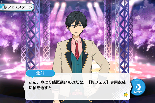 Хокуто: Хм. Это и правда очень трогательно надеть костюм, сшитый специально для SakuraFes.