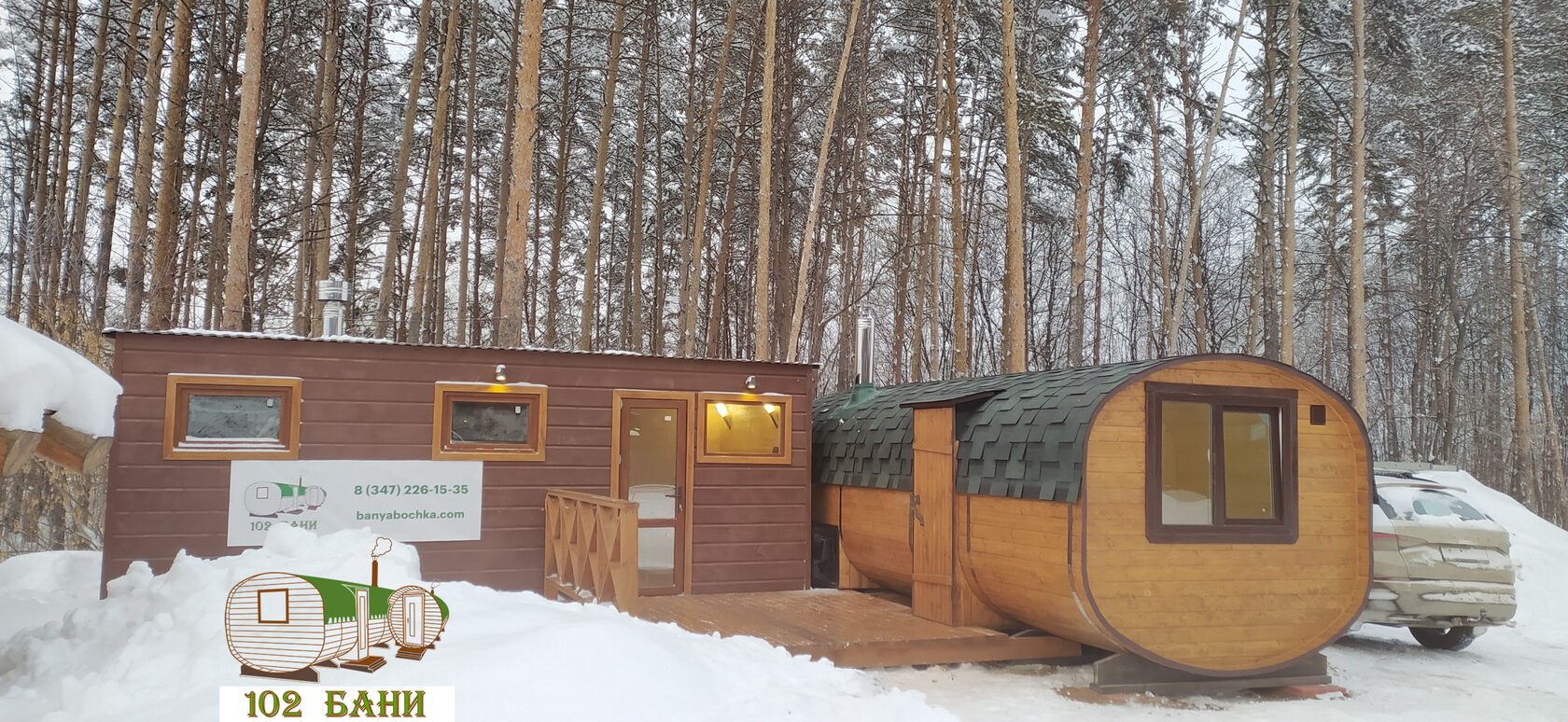 Бани-бочки от компании «102 БАНИ» из отборного массива кедра или ели в наличии и на заказ . Доставим и установим всего за 2-3 недели! Выберите свою форму: круглая, квадро или овальная . Размеры от 3 до 6 м .