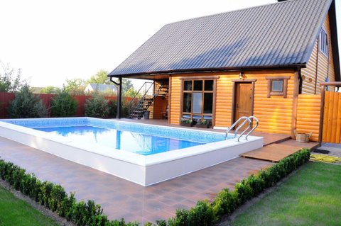 Баня с бассейном и хозблоком . Баня с бассейном - это роскошь, которая делает посещение парной более приятным и полезным .