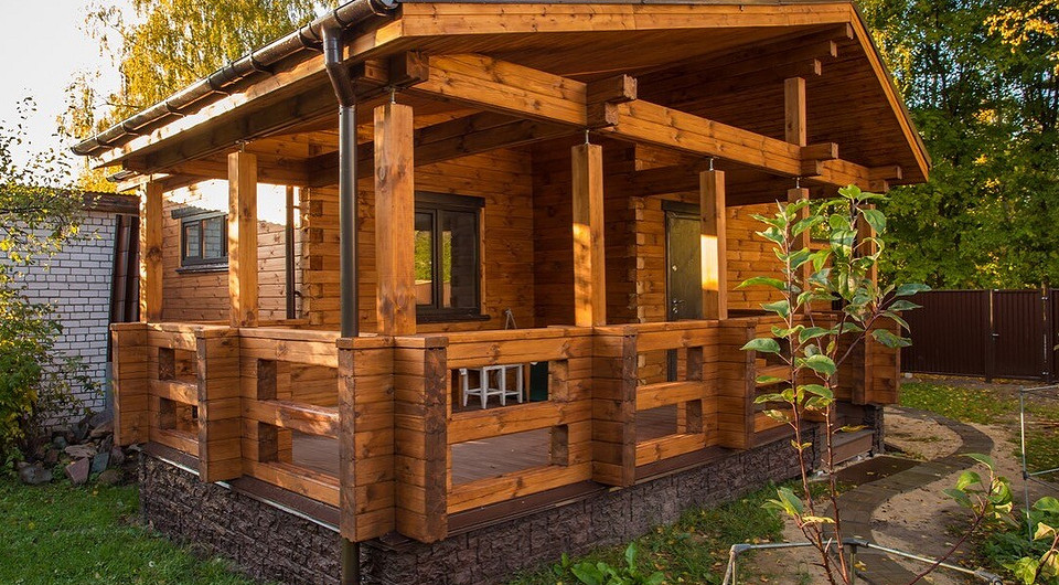 Дизайн бани снаружи фото с верандой