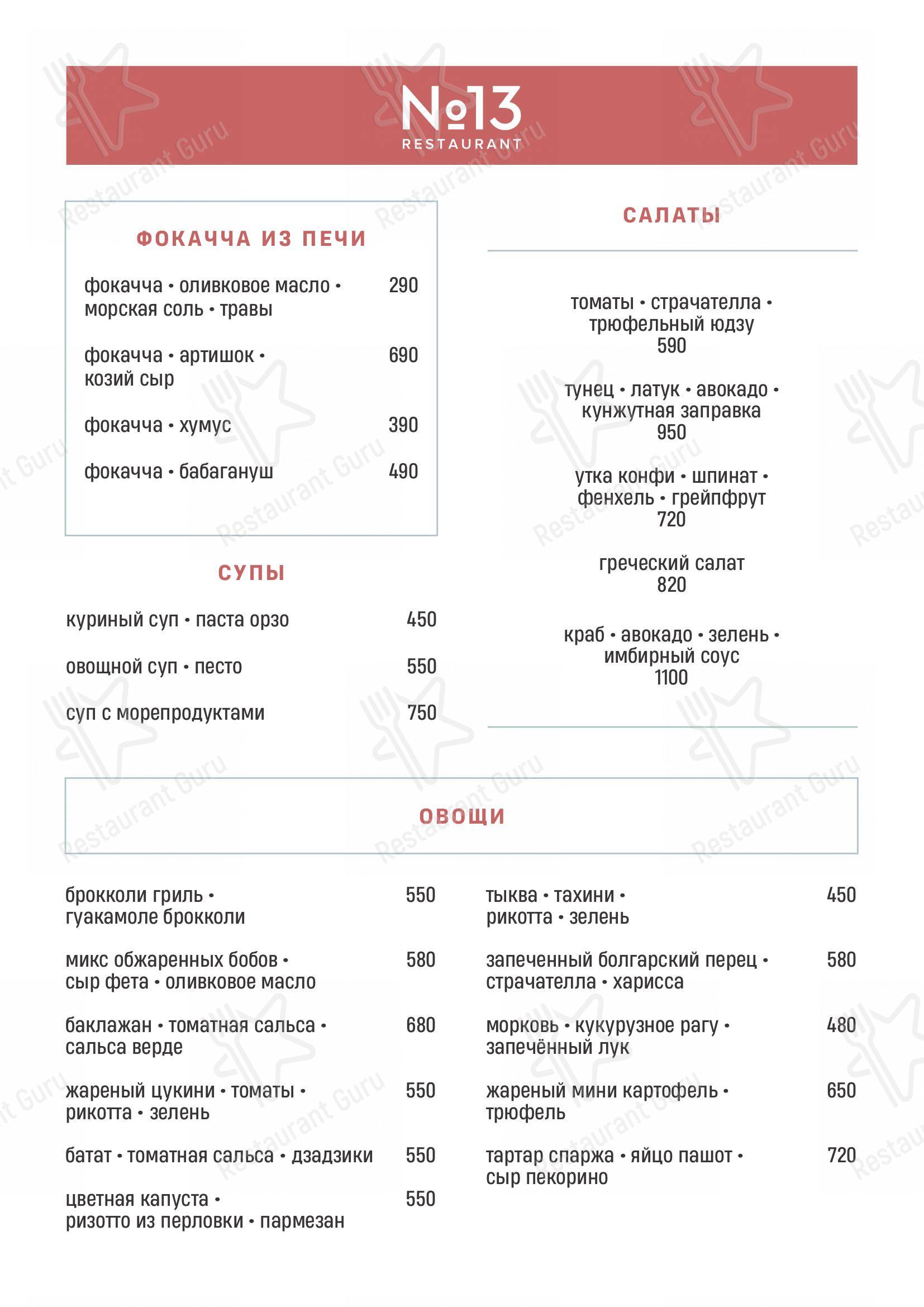Бар 13 меню