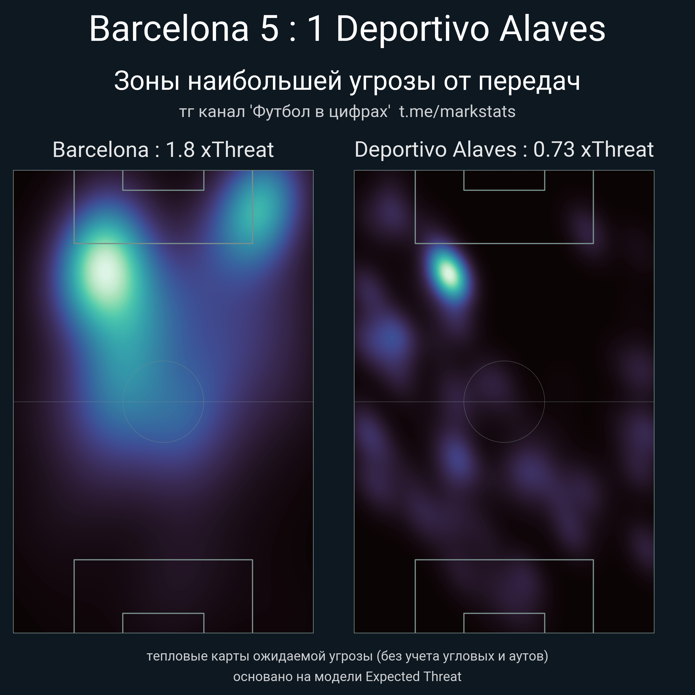 ▪ xThreat без учета угловых: 1.8 - 0.73