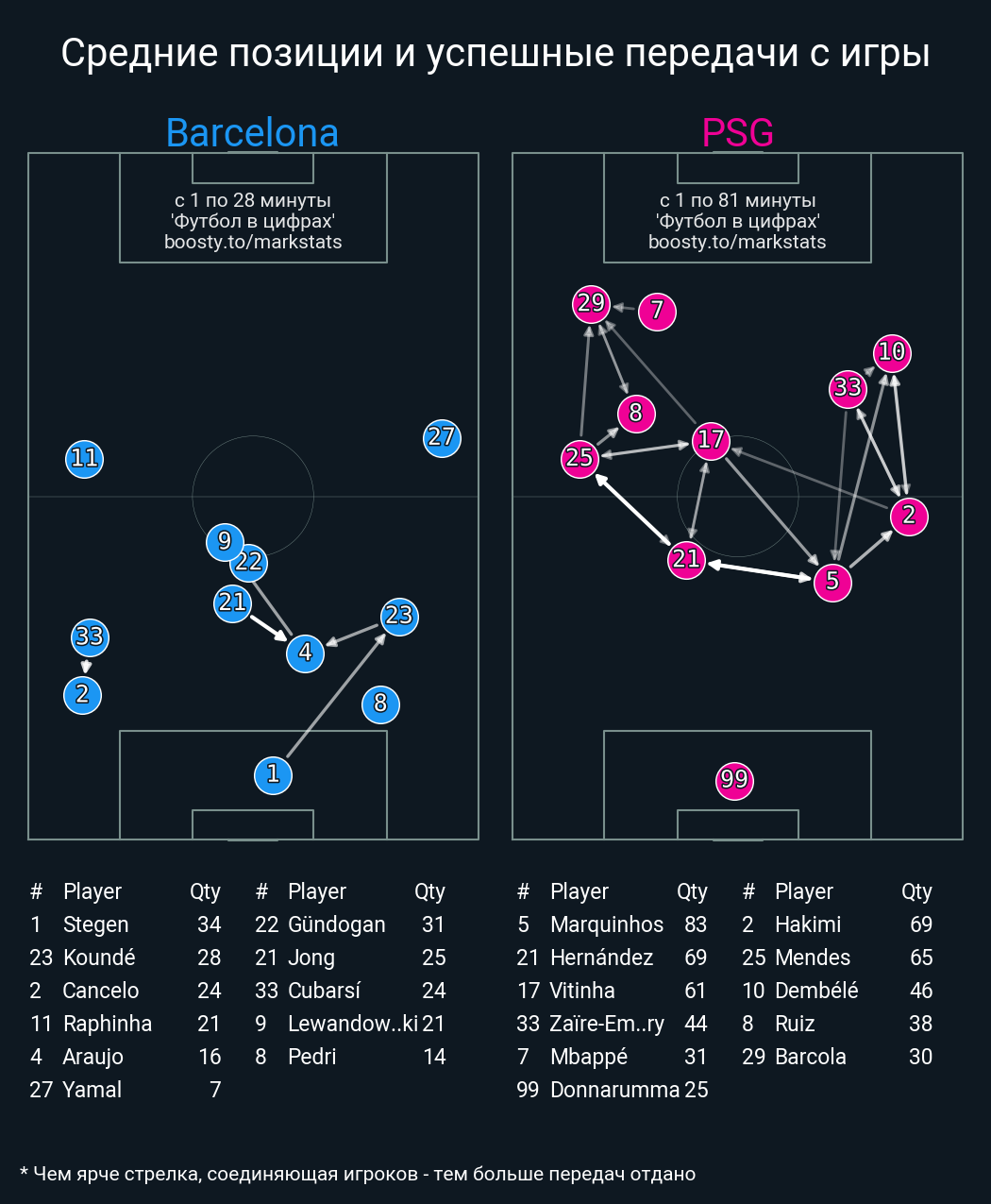 28 успешных передач из 32 попыток (2 под удар, 3 с продвижением, 11 на трети соперника)