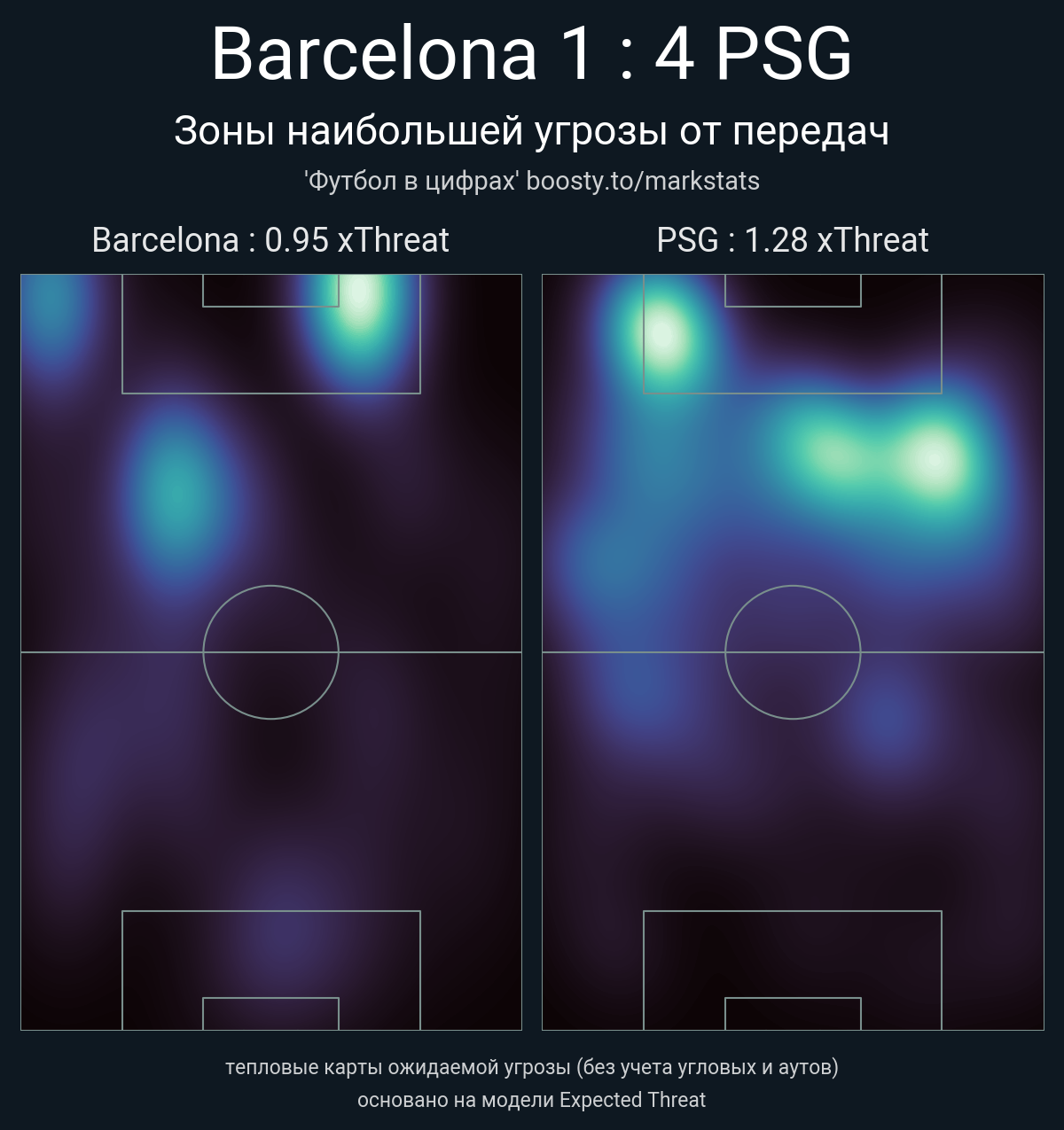 xThreat без учета угловых: 0.95 - 1.28