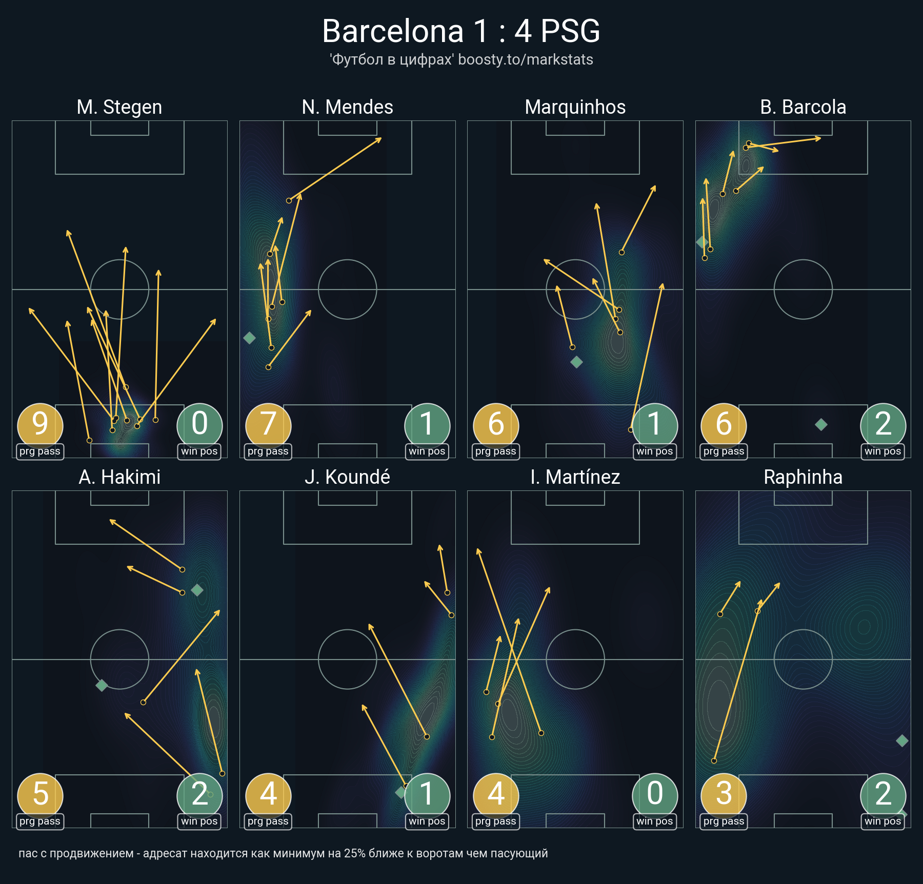 76 успешных передач из 84 попыток (1 ассист, 4 под удар, 5 с продвижением, 17 на трети соперника)