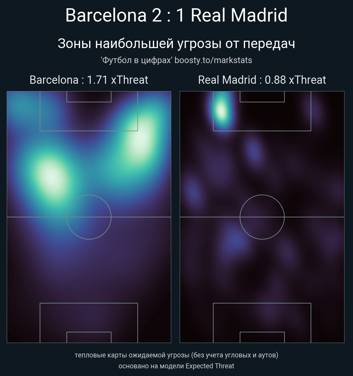 xThreat без учета угловых: 1.71 - 0.88