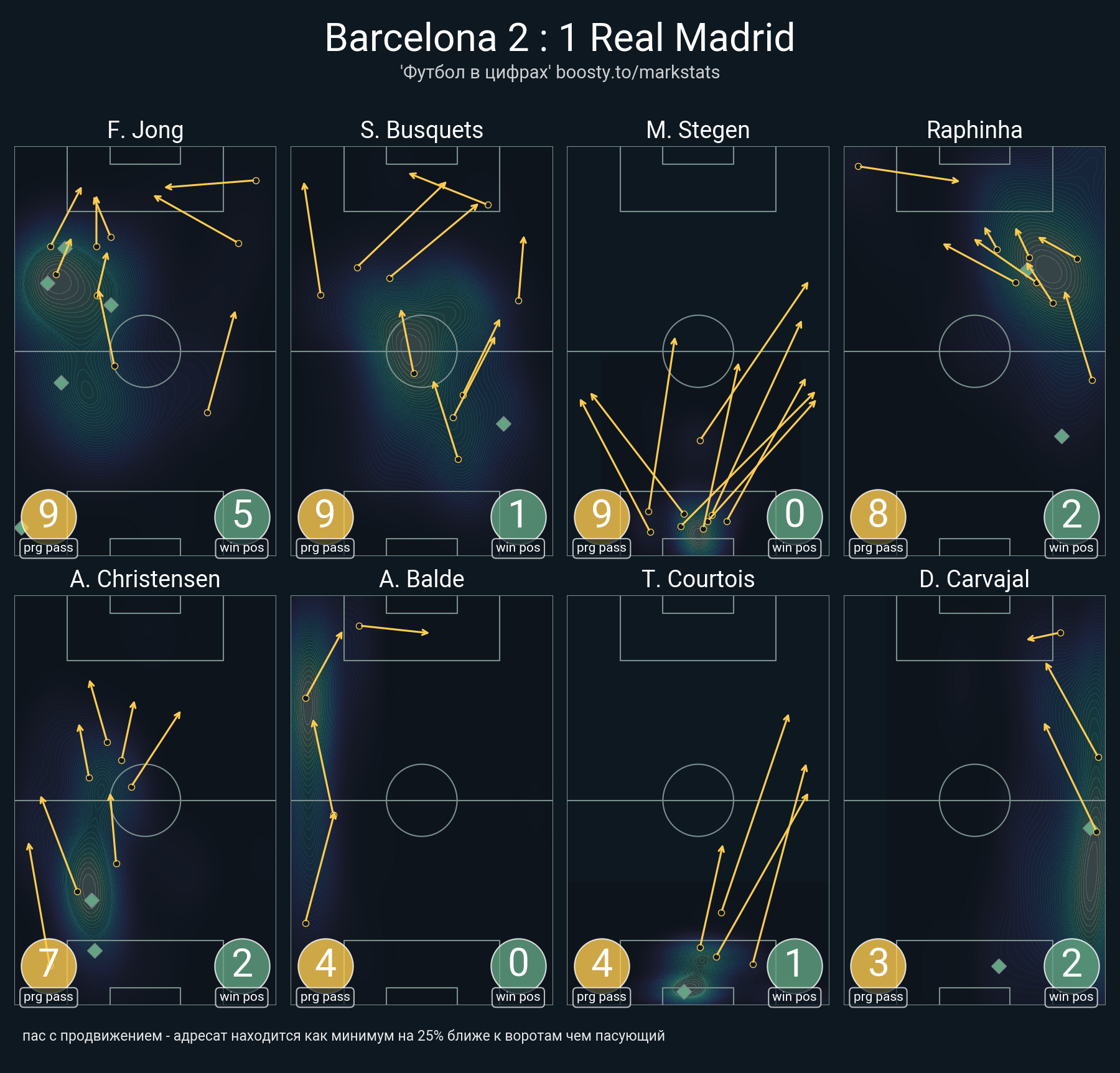 27 успешных передач из 35 попыток (1 под удар, 1 с продвижением, 6 на трети соперника)