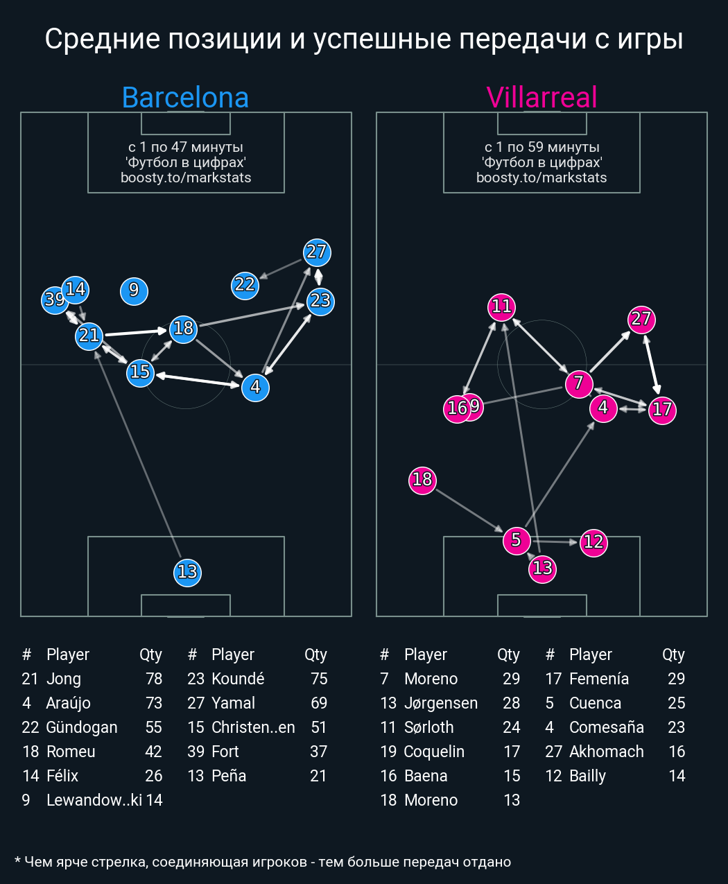 59 успешных передач из 71 попыток (2 под удар, 7 с продвижением, 36 на трети соперника)