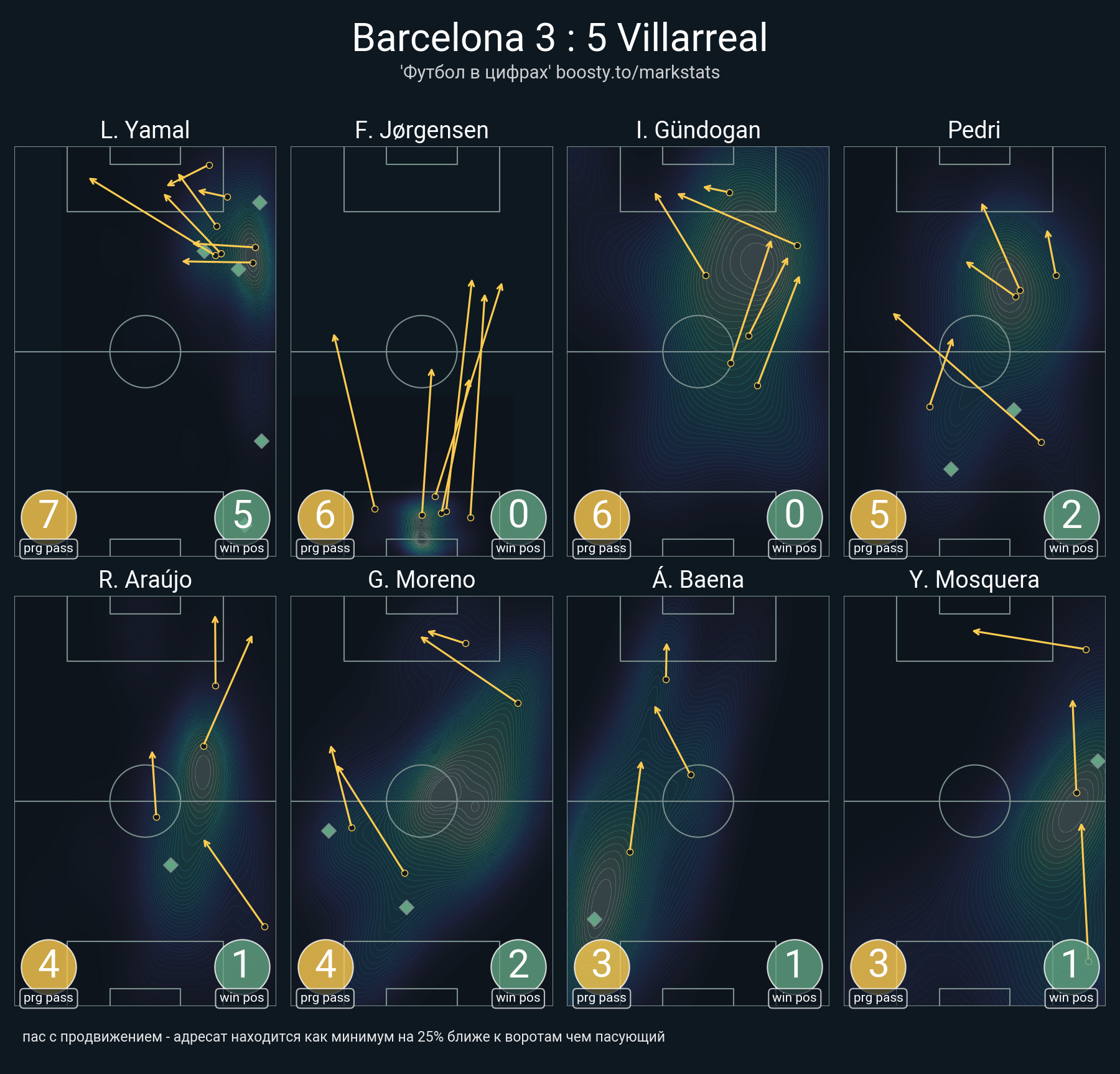 22 успешных передач из 29 попыток (3 с продвижением, 2 на трети соперника)