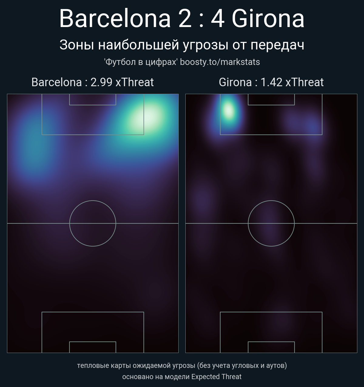 xThreat без учета угловых: 2.99 - 1.42