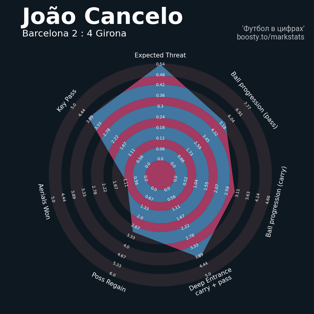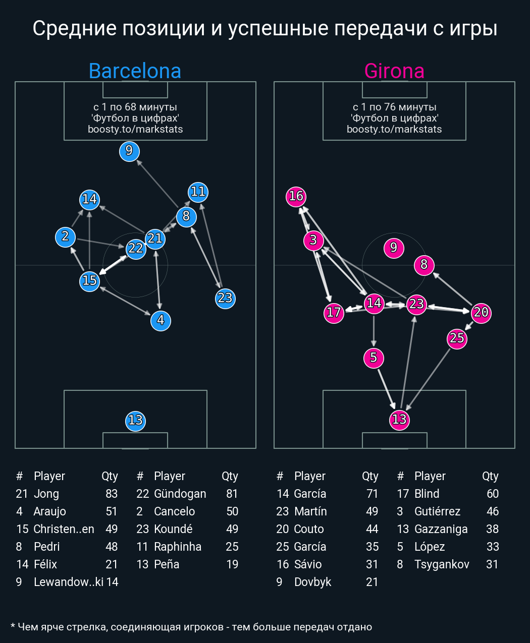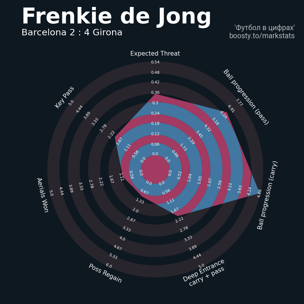 42 успешных передач из 48 попыток (5 под удар, 6 с продвижением, 17 на трети соперника)