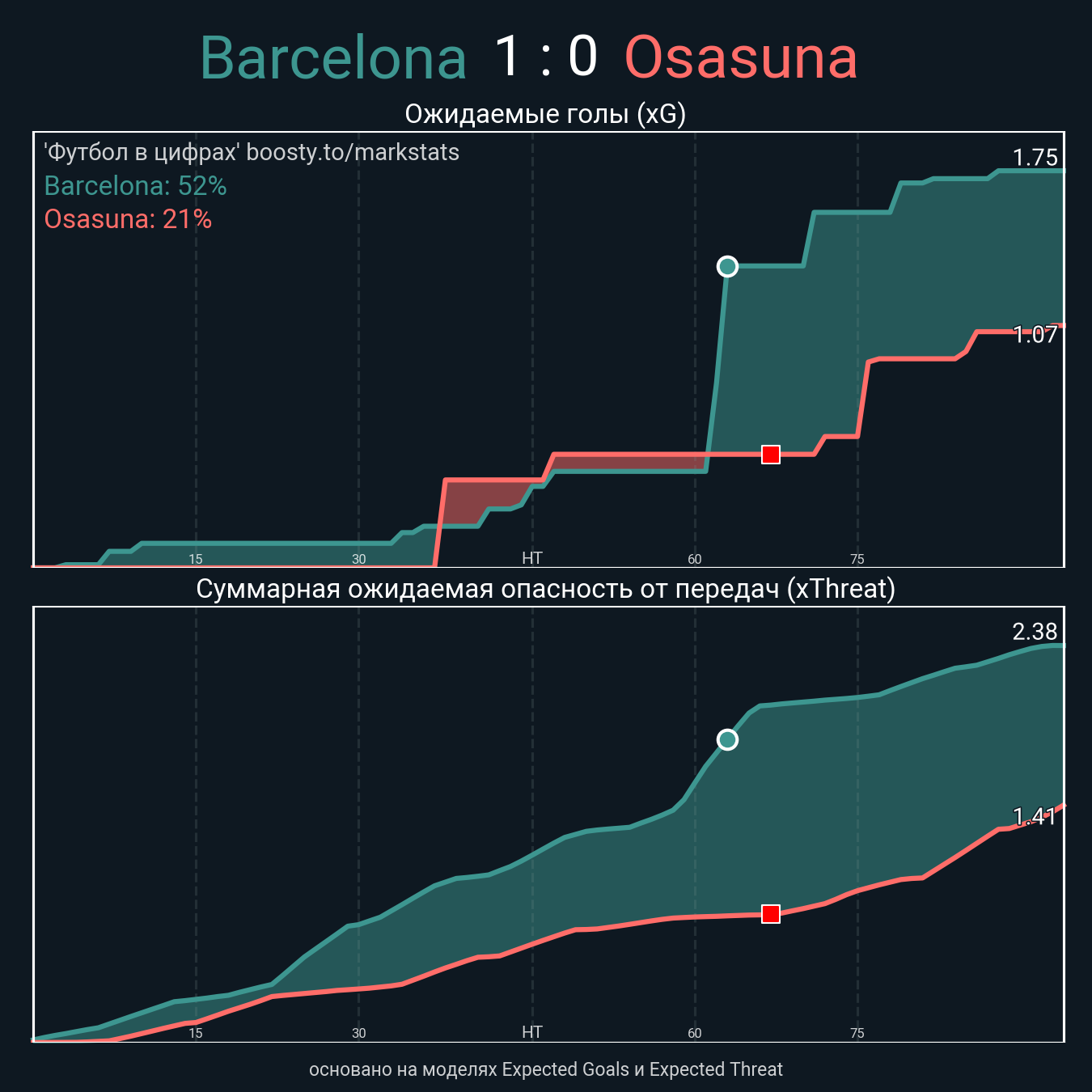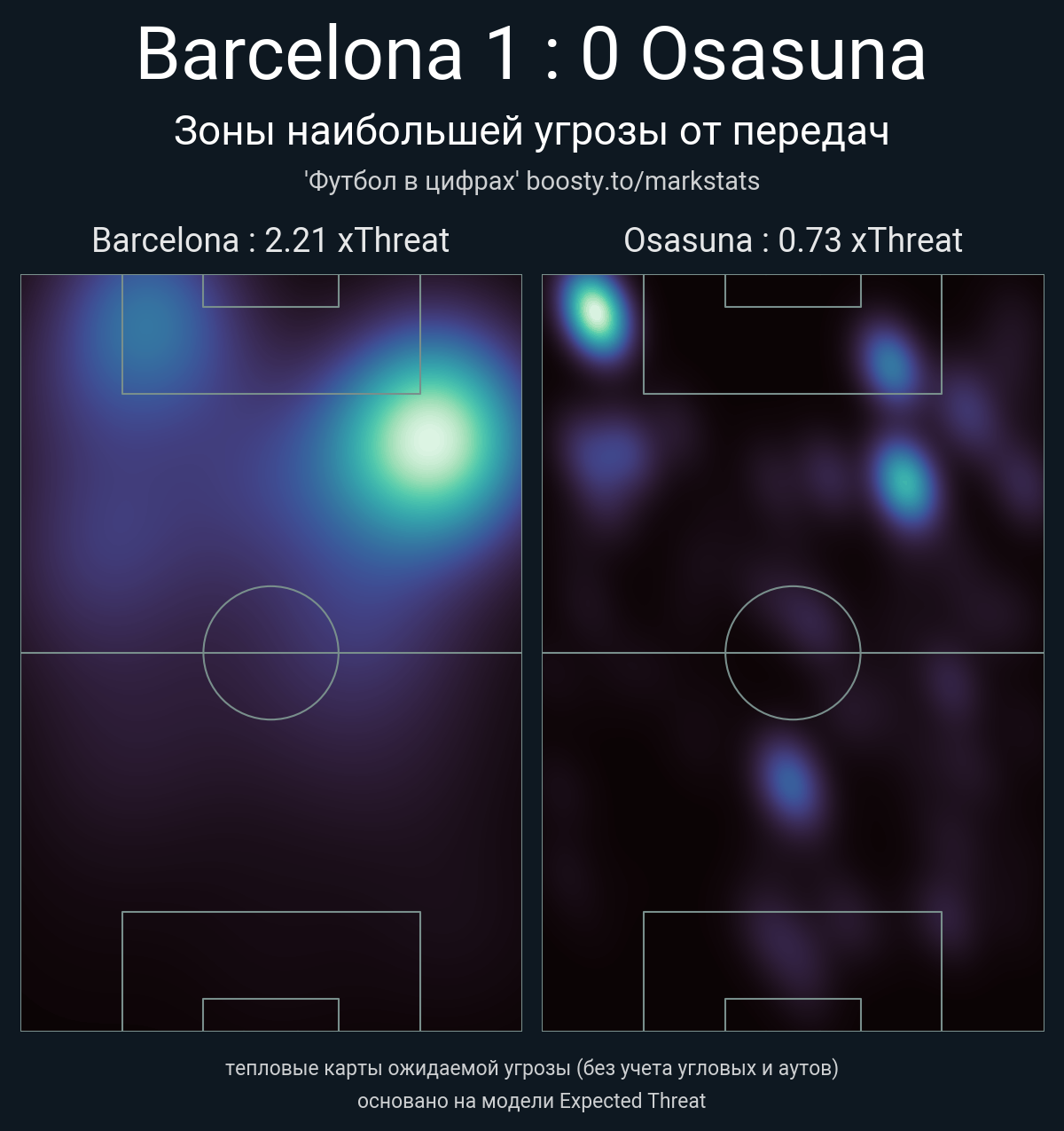xThreat без учета угловых: 2.21 - 0.73