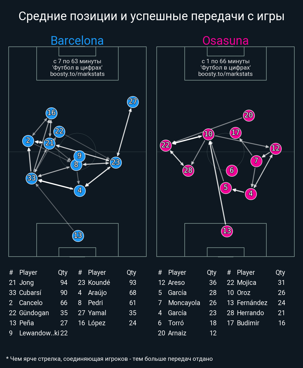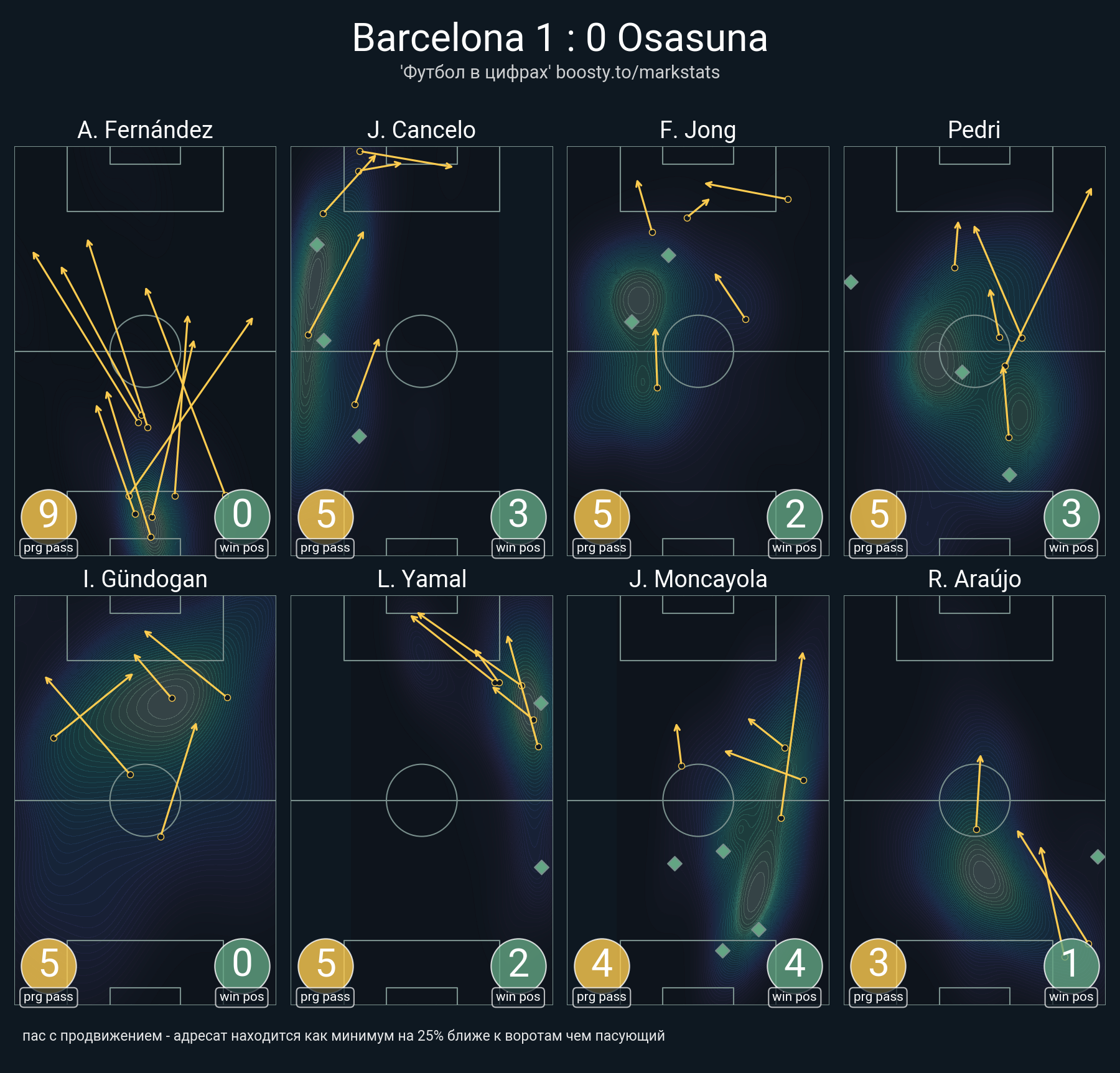 62 успешных передач из 80 попыток (1 ассист, 3 под удар, 5 с продвижением, 15 на трети соперника)