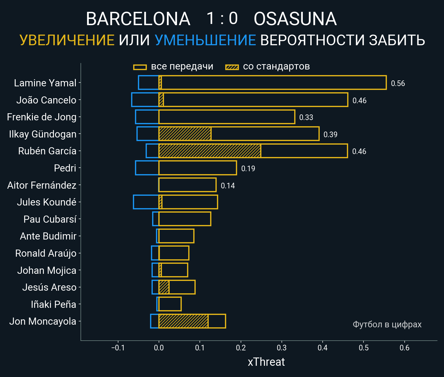 0.26 очка xT (+0.13 со стандартов)