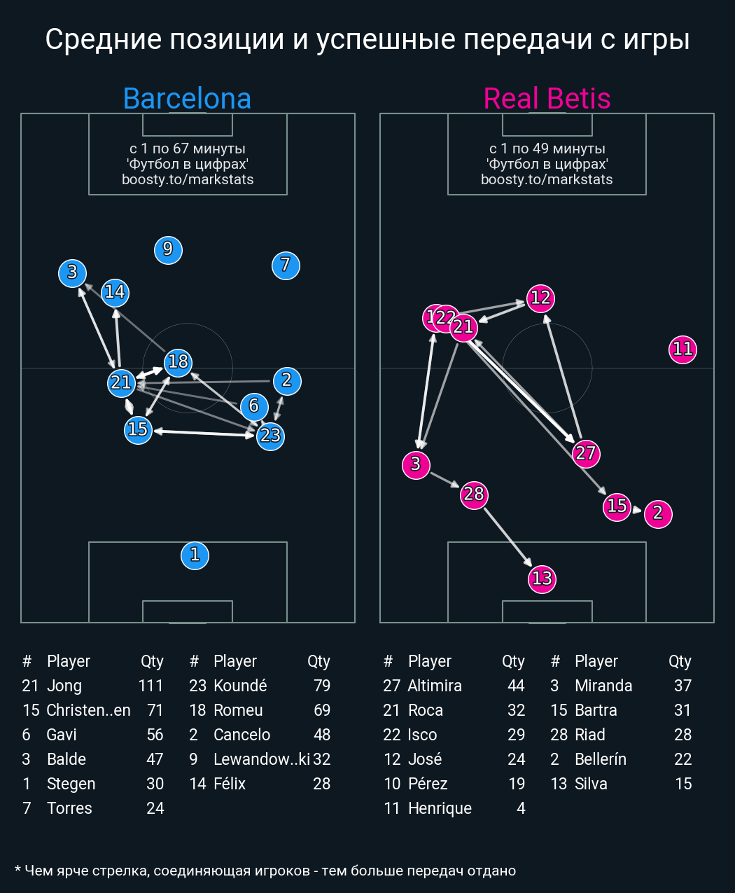 106 успешных передач из 112 попыток (9 с продвижением, 8 на трети соперника)