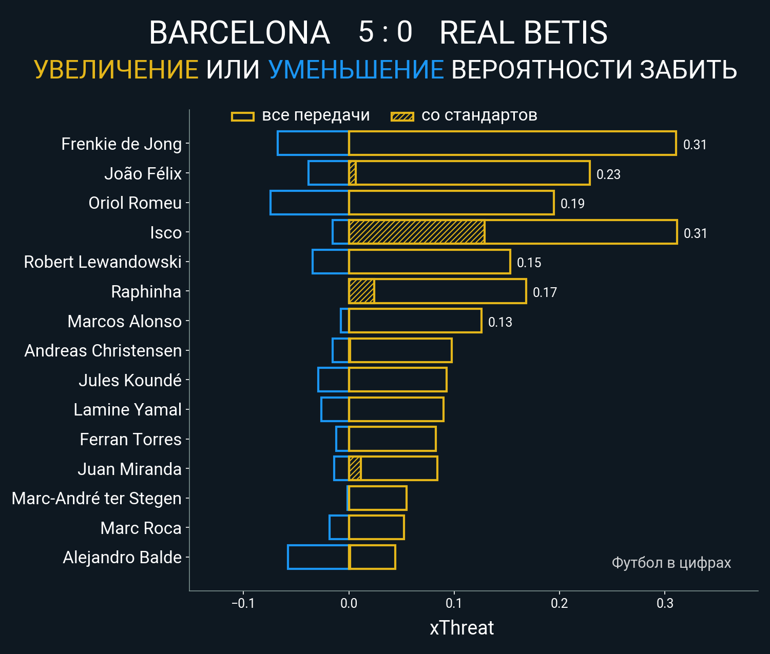 0.18 очка xT (+0.13 со стандартов)
