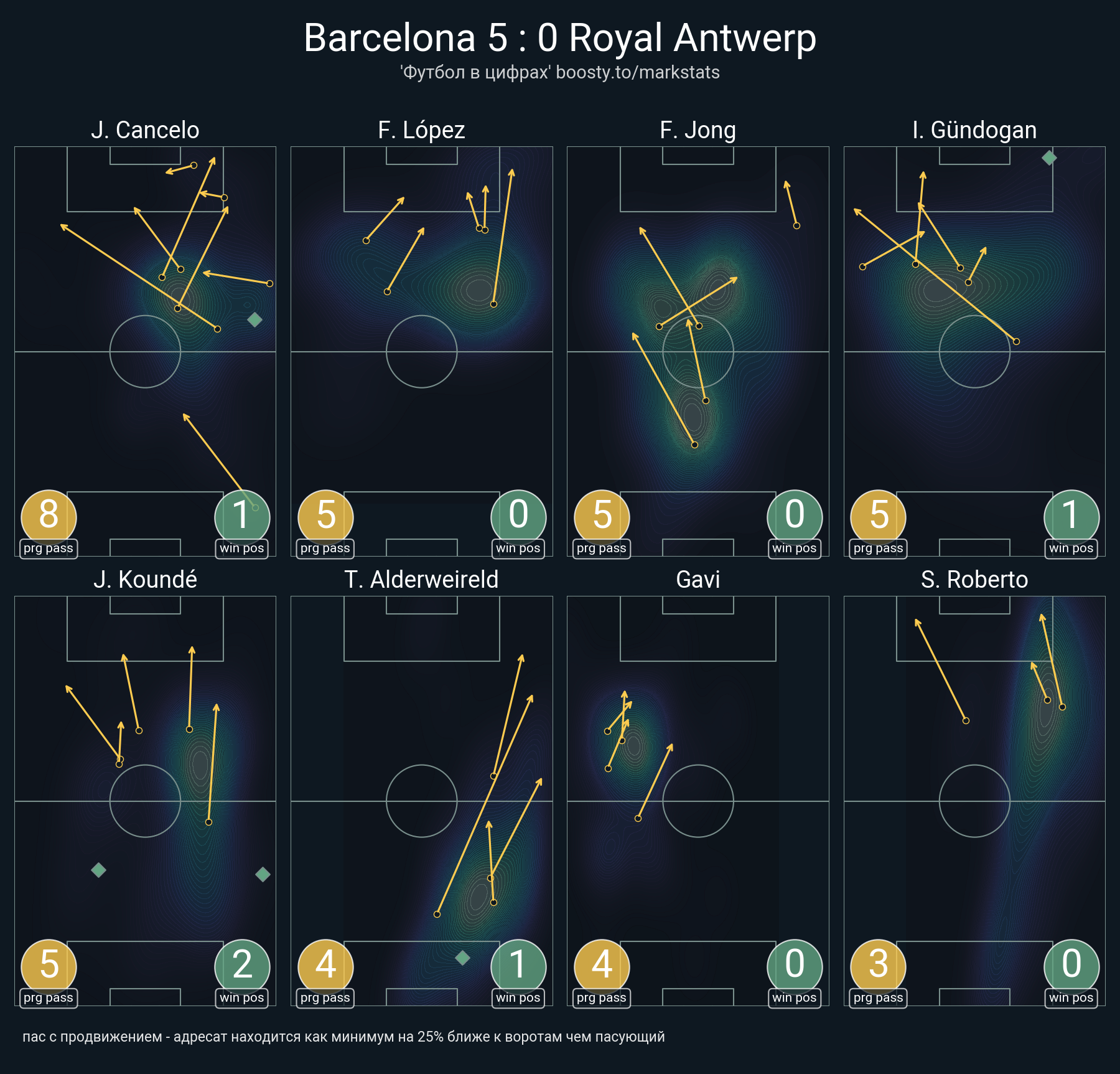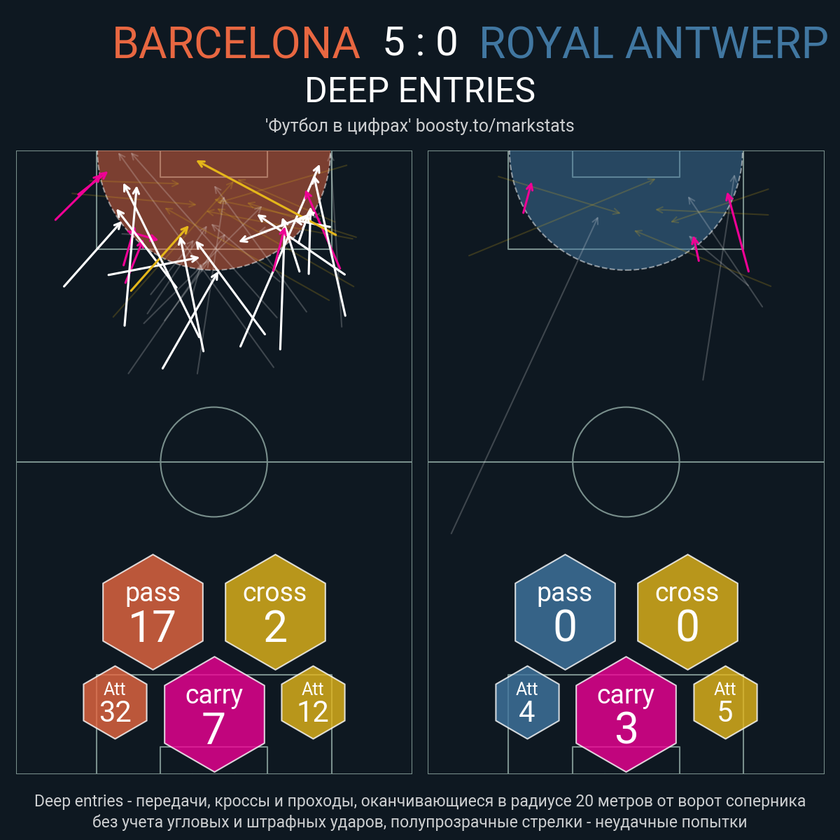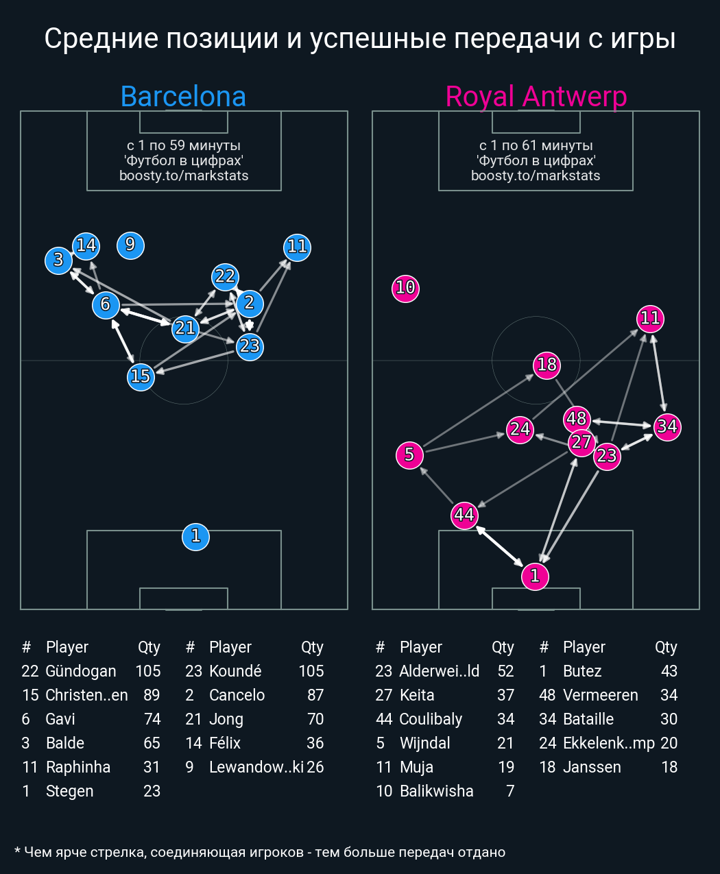 97 успешных передач из 105 попыток (2 под удар, 5 с продвижением, 7 на трети соперника)