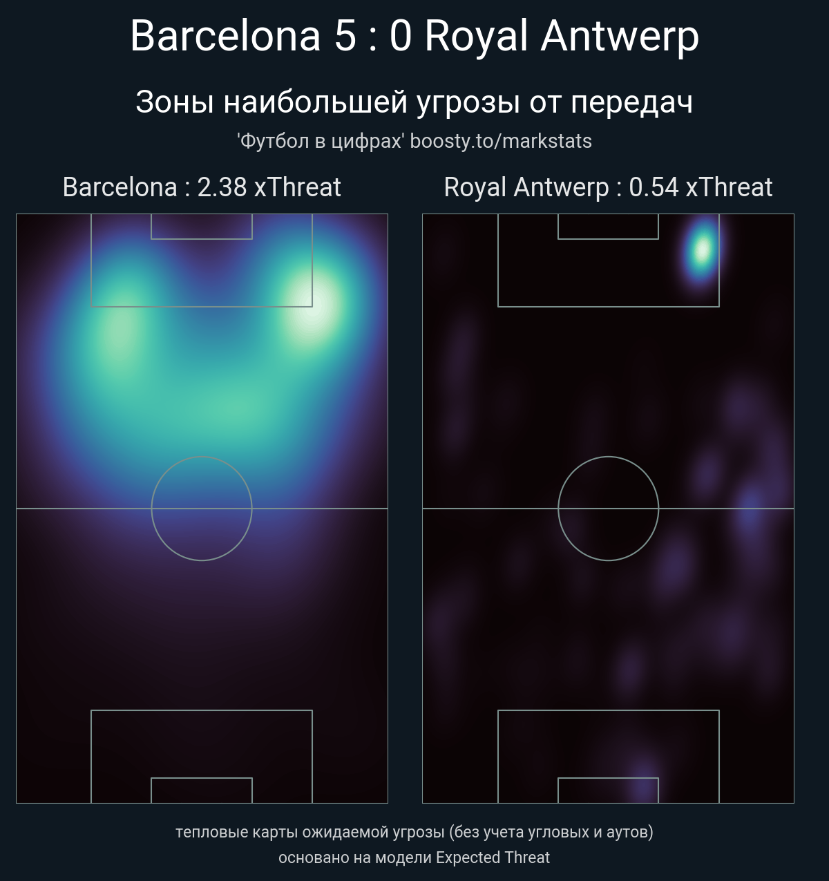 xThreat без учета угловых: 2.38 - 0.54