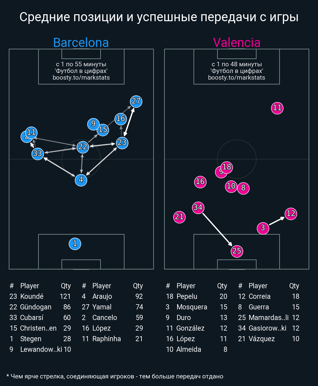 120 успешных передач из 129 попыток (1 под удар, 10 с продвижением, 17 на трети соперника)