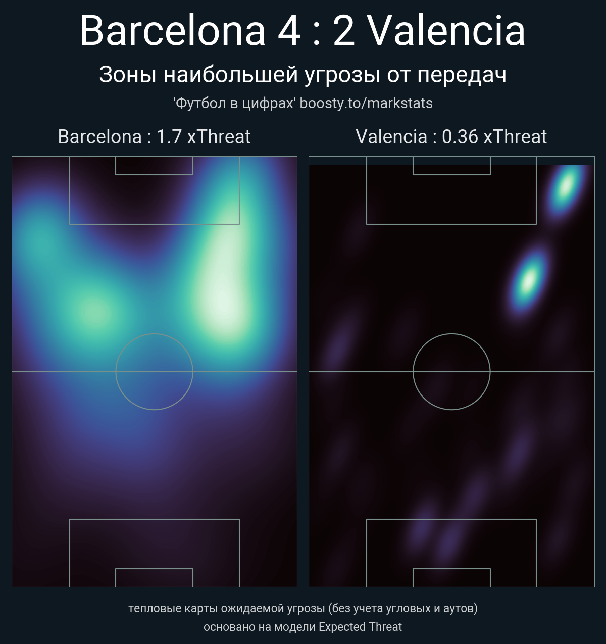 xThreat без учета угловых: 1.7 - 0.36