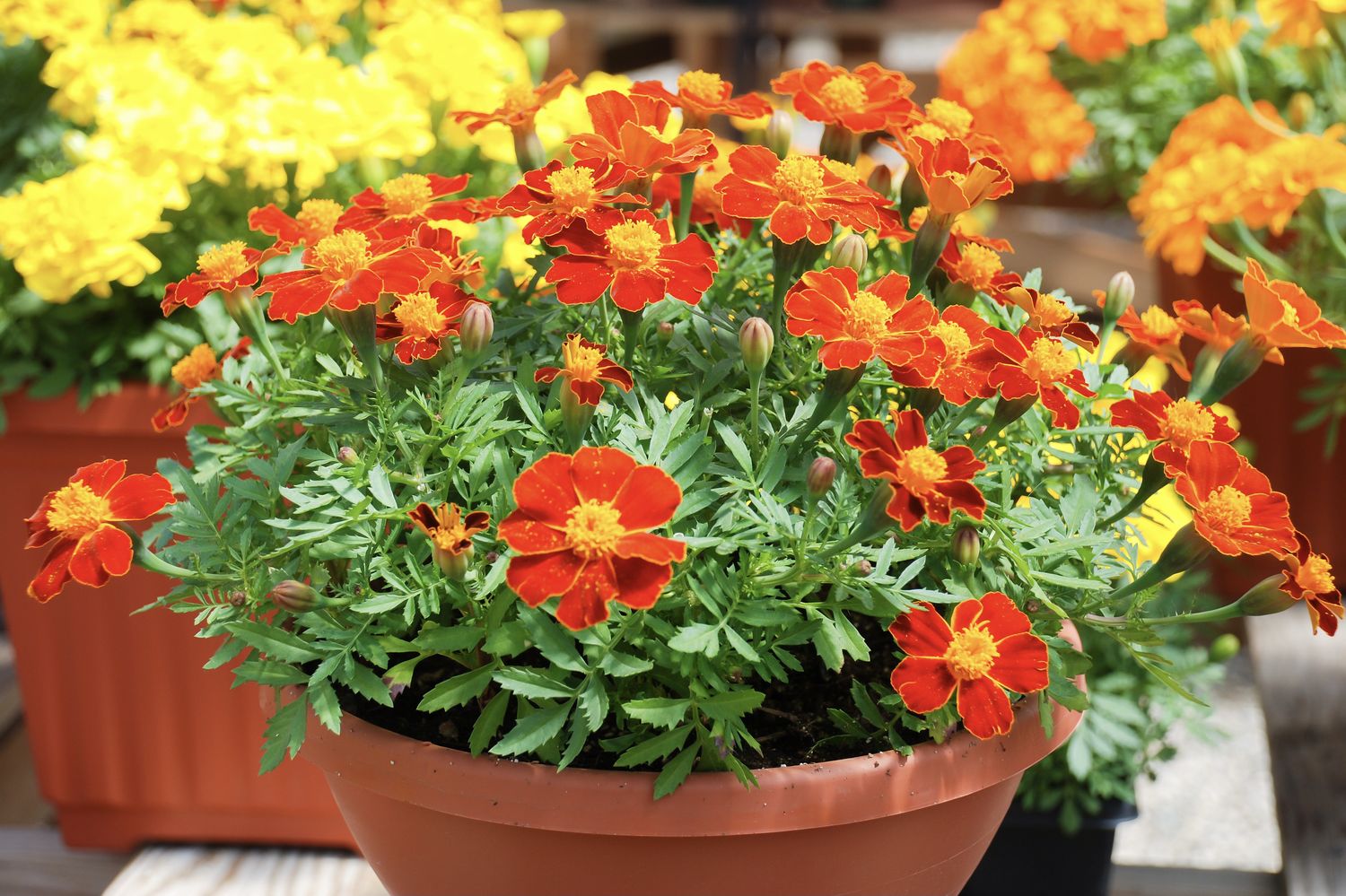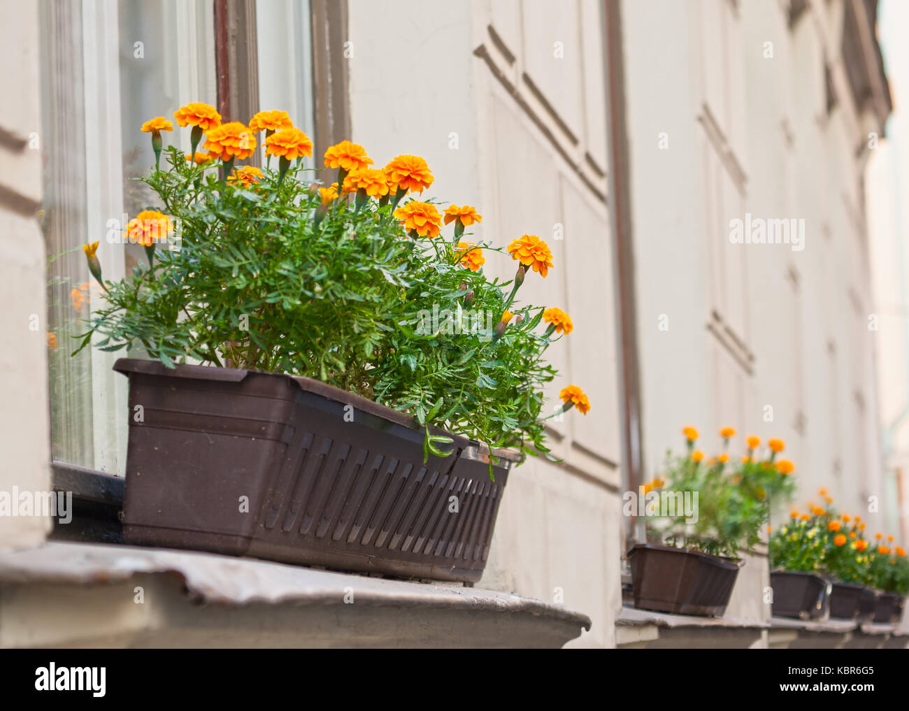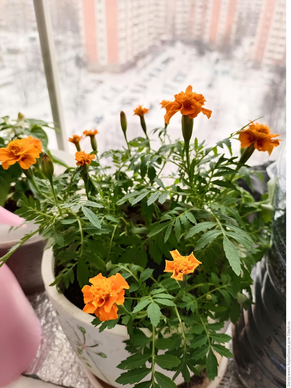 Бархатцы в балконных ящиках