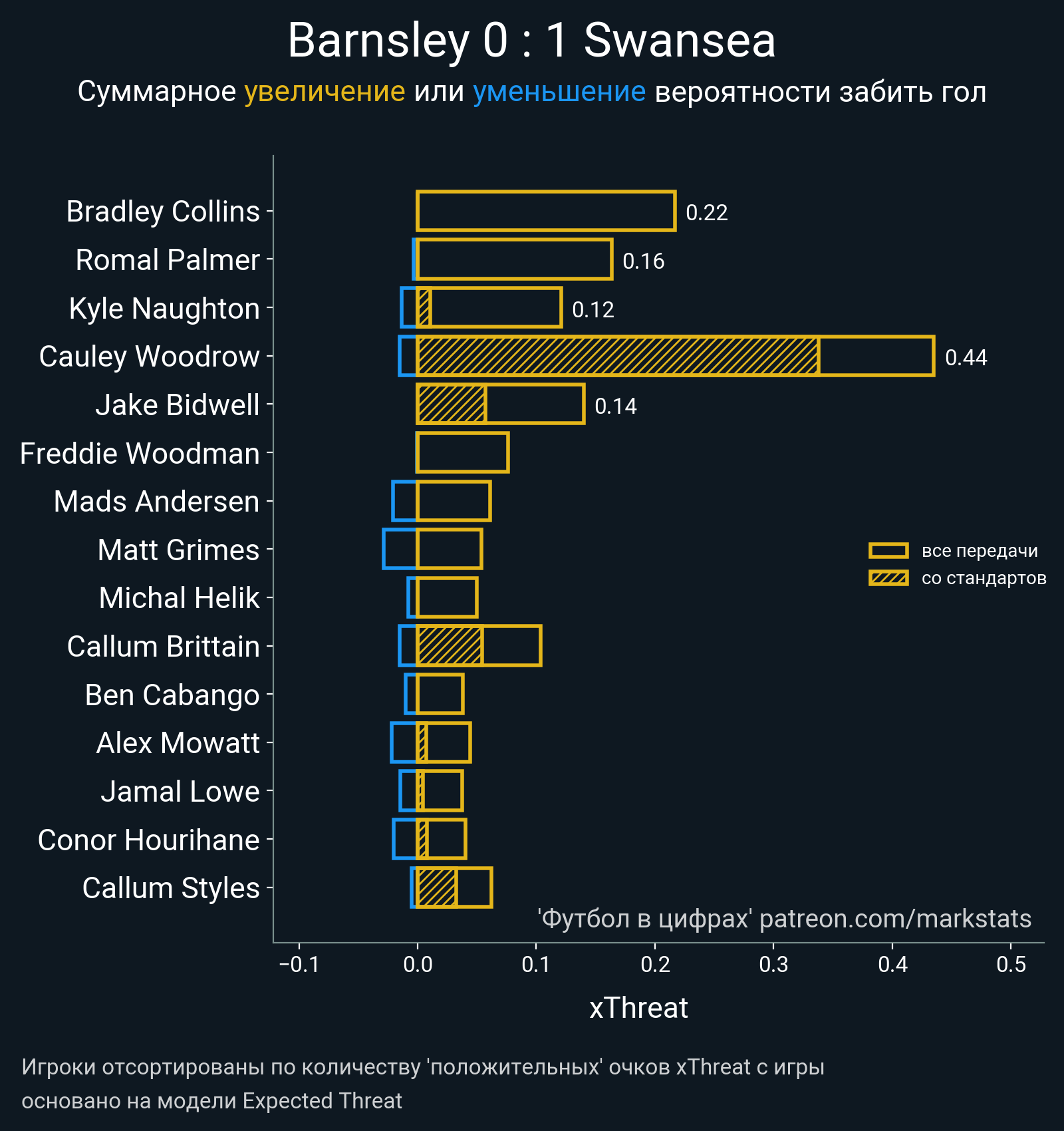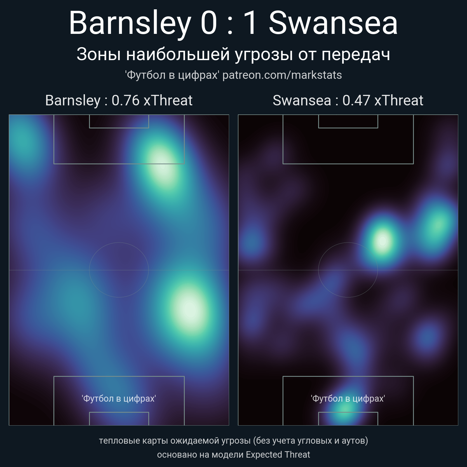 ▪ xThreat без учета угловых: 0.76 - 0.47