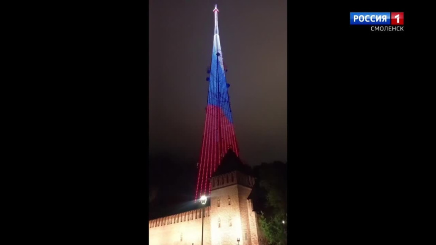 Башня в смоленске светится