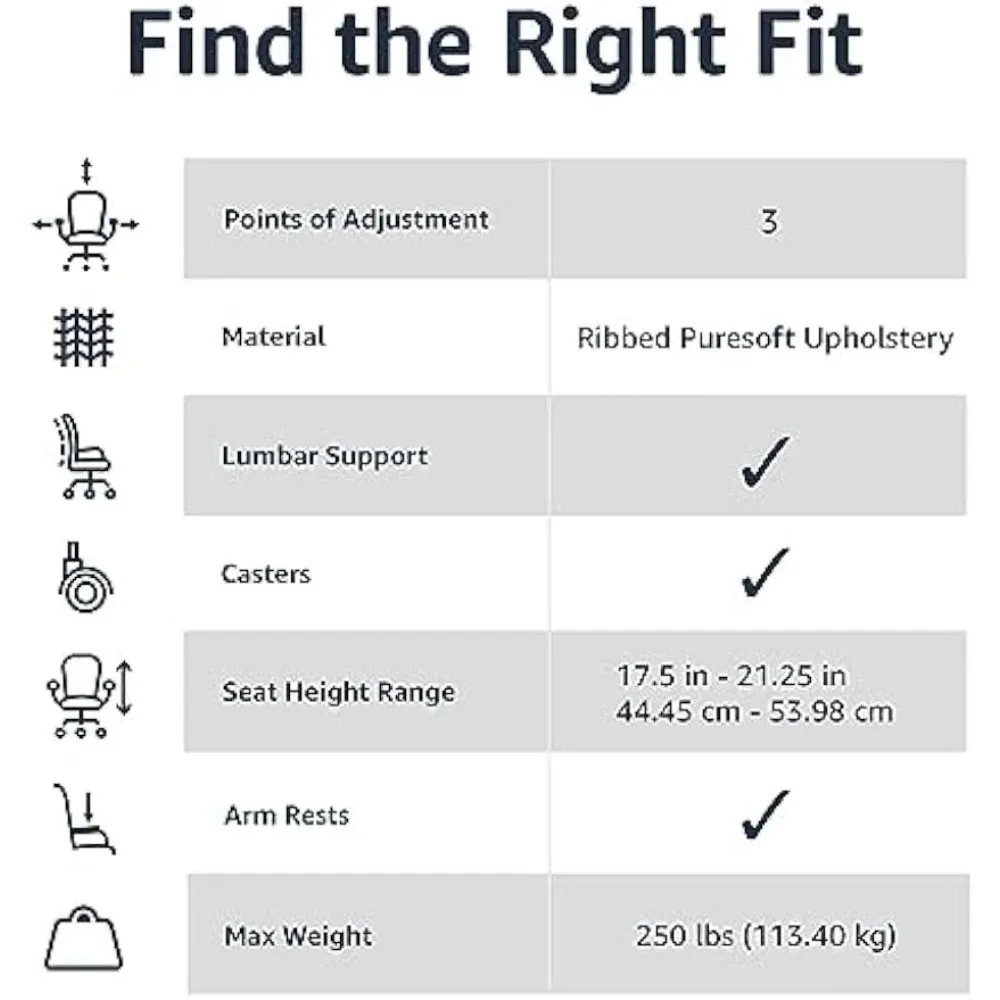 "Basics High-Back Executive Swivel Office Desk Chair with Ribbed Puresoft Upholstery, Lumbar Support, Modern Style Computer Chair" * Buy Now With Free Shipping Just For $152
