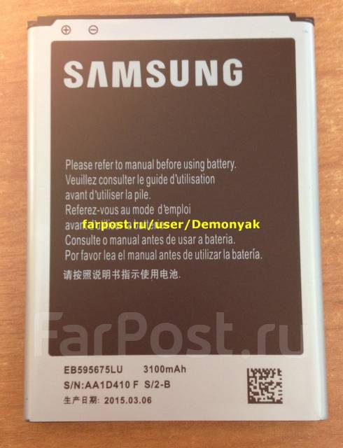 Описание Аккумулятор Samsung Galaxy Note2 N7100 (АТ000002901) Аккумуляторная батарея Samsung EB595675LU . Емкость этого аккумулятора составляет 3100 мА*ч, чего вполне хватает на день эксплуатации устройства в среднем режиме нагрузки .