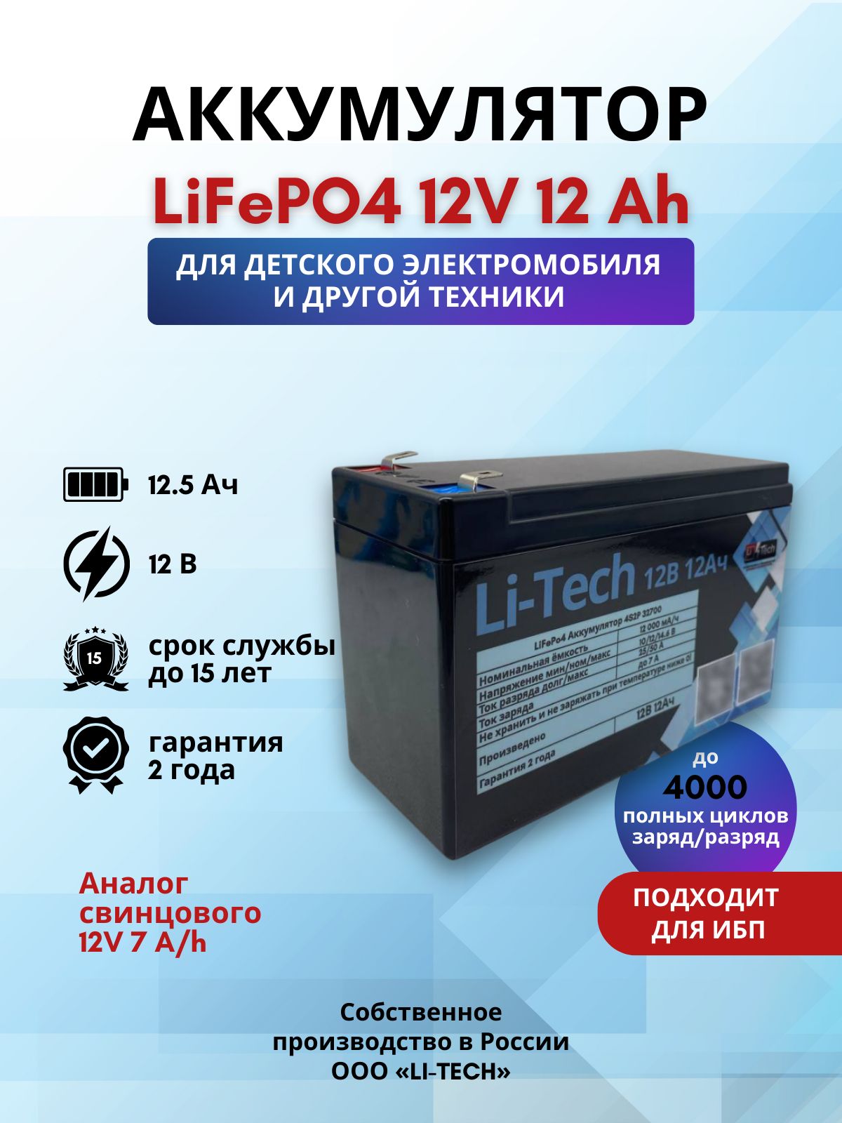 Батарея для детского электромобиля