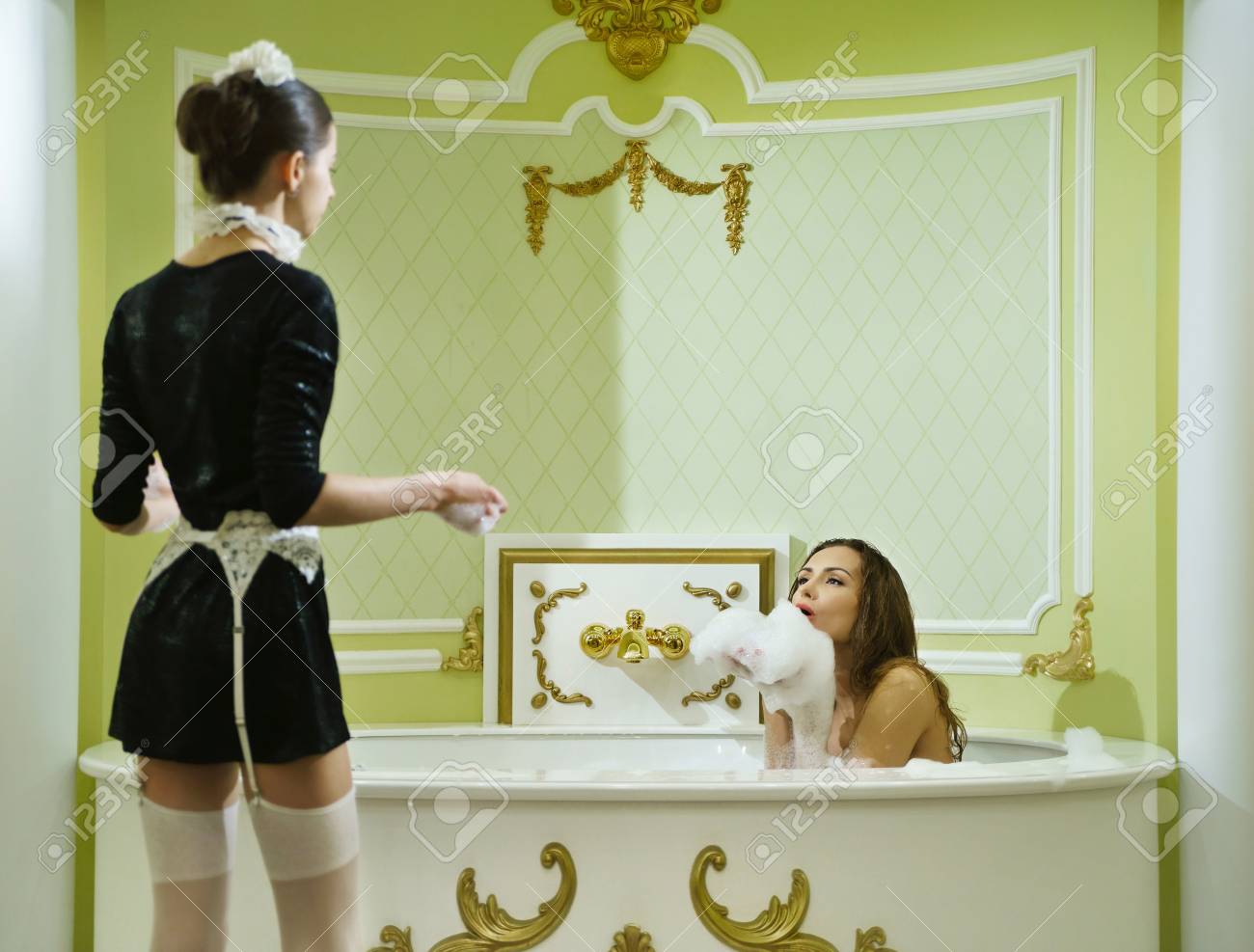 Bath lesbian taking