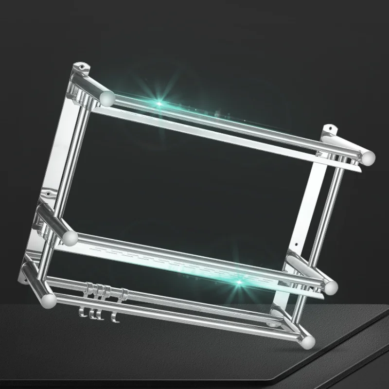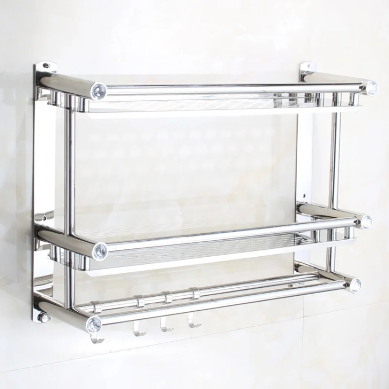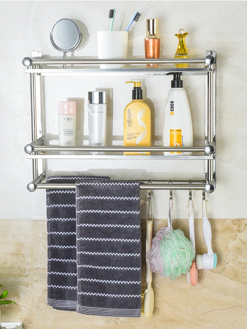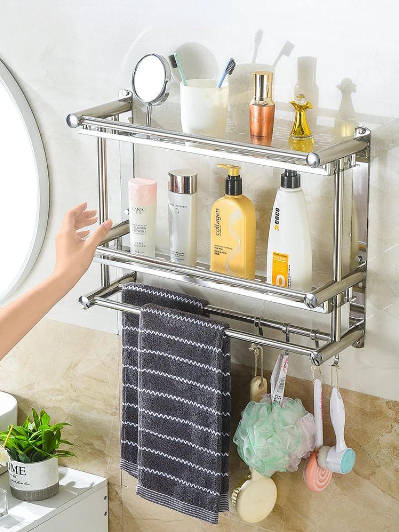 Bathroom Double Layer Stainless Steel Towel Rack Movable Towel Rack Simple Bathroom Wall-mounted Non Perforated Shelf Pendant - Купить с бесплатной доставкой
