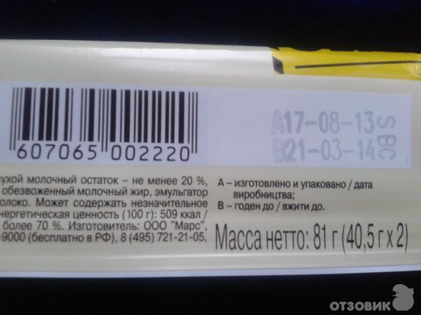 Батончик сникерс код