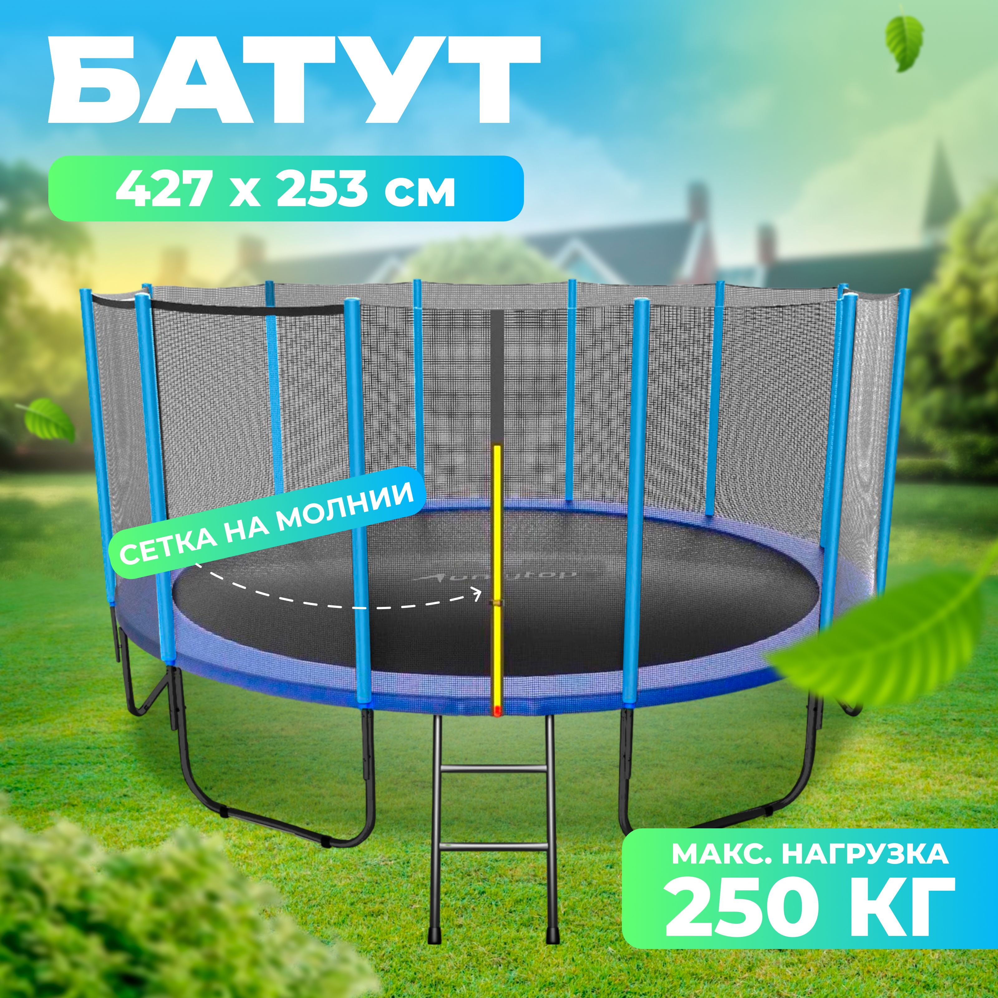 Батут 427 см с защитной сеткой 93 фотографий