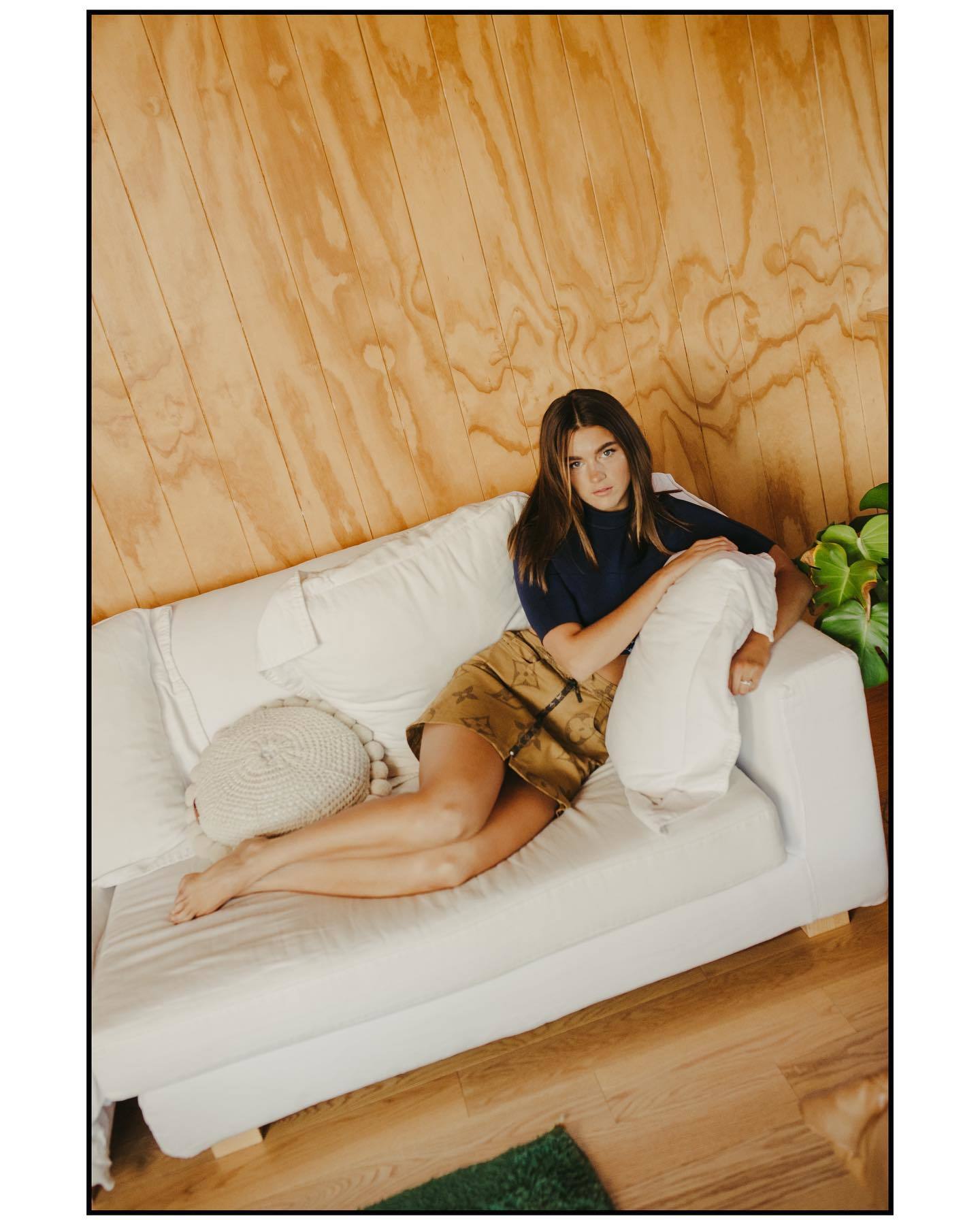 She discovers the hidden camera and plays with her body