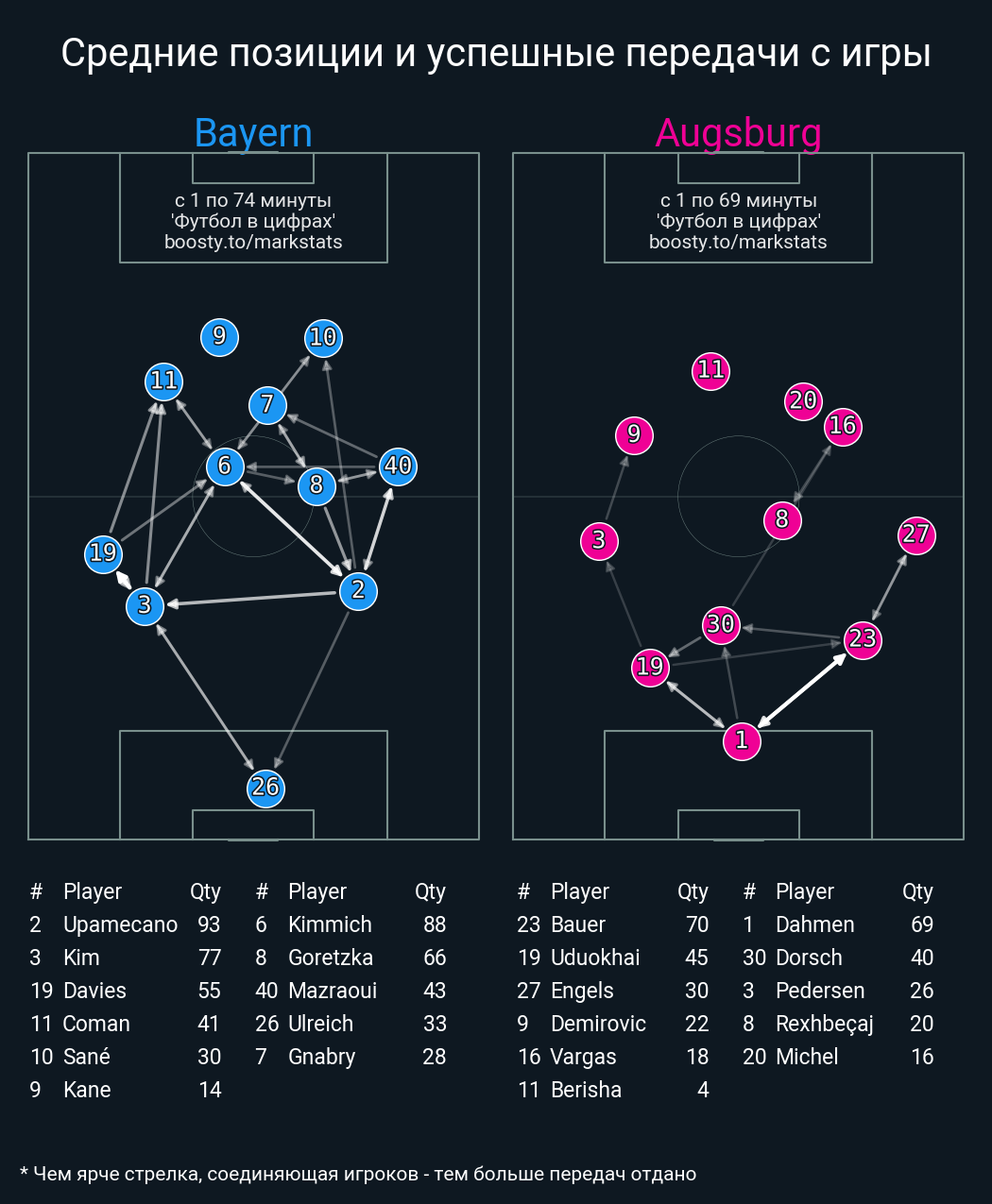 44 успешных передач из 50 попыток (2 под удар, 3 с продвижением, 17 на трети соперника)