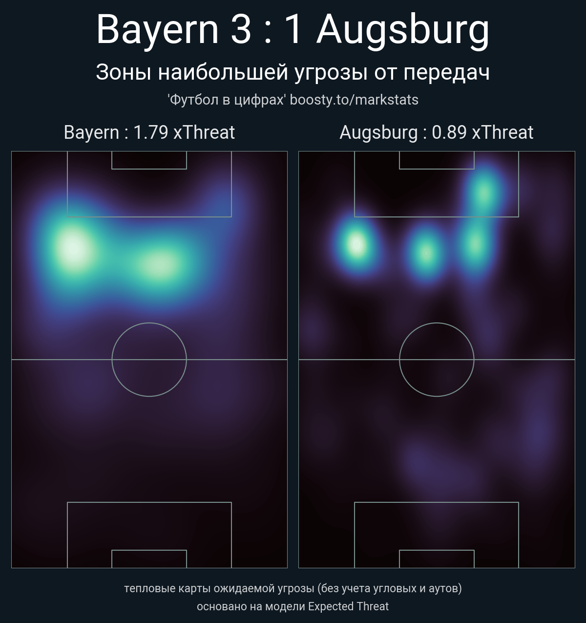xThreat без учета угловых: 1.79 - 0.89