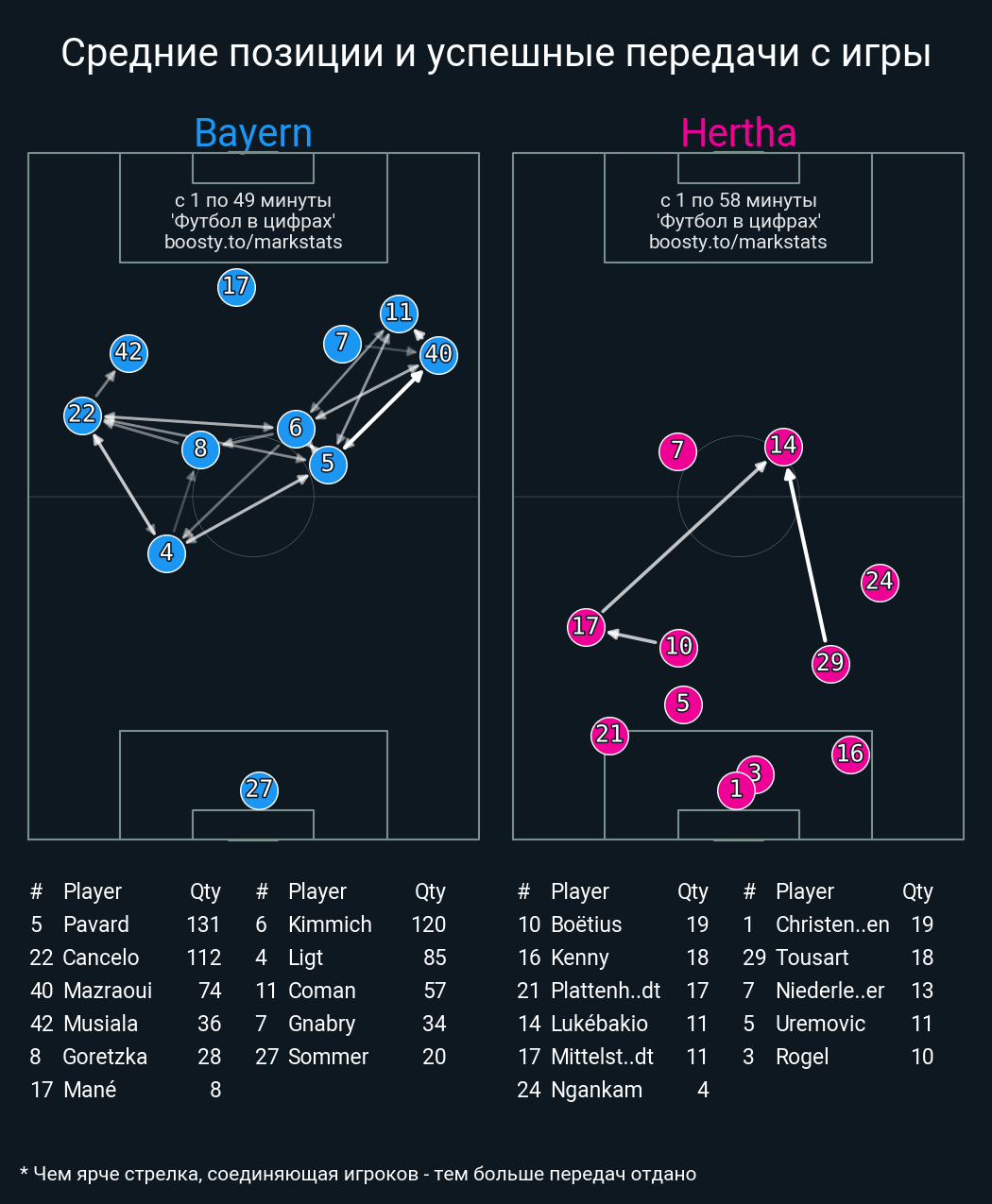 129 успешных передач из 133 попыток (8 с продвижением, 11 на трети соперника)