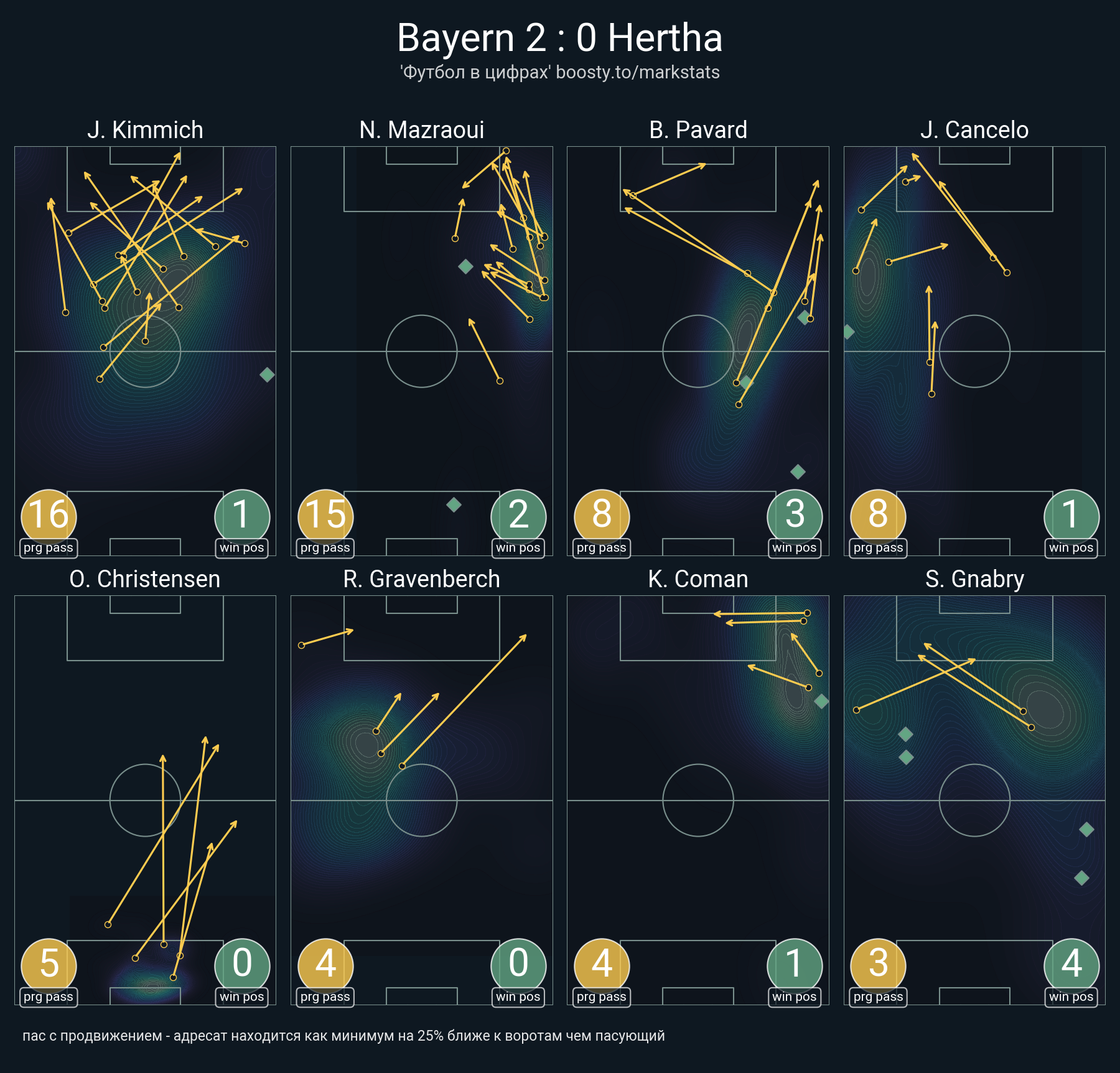 119 успешных передач из 137 попыток (2 ассист, 11 под удар, 16 с продвижением, 38 на трети соперника)