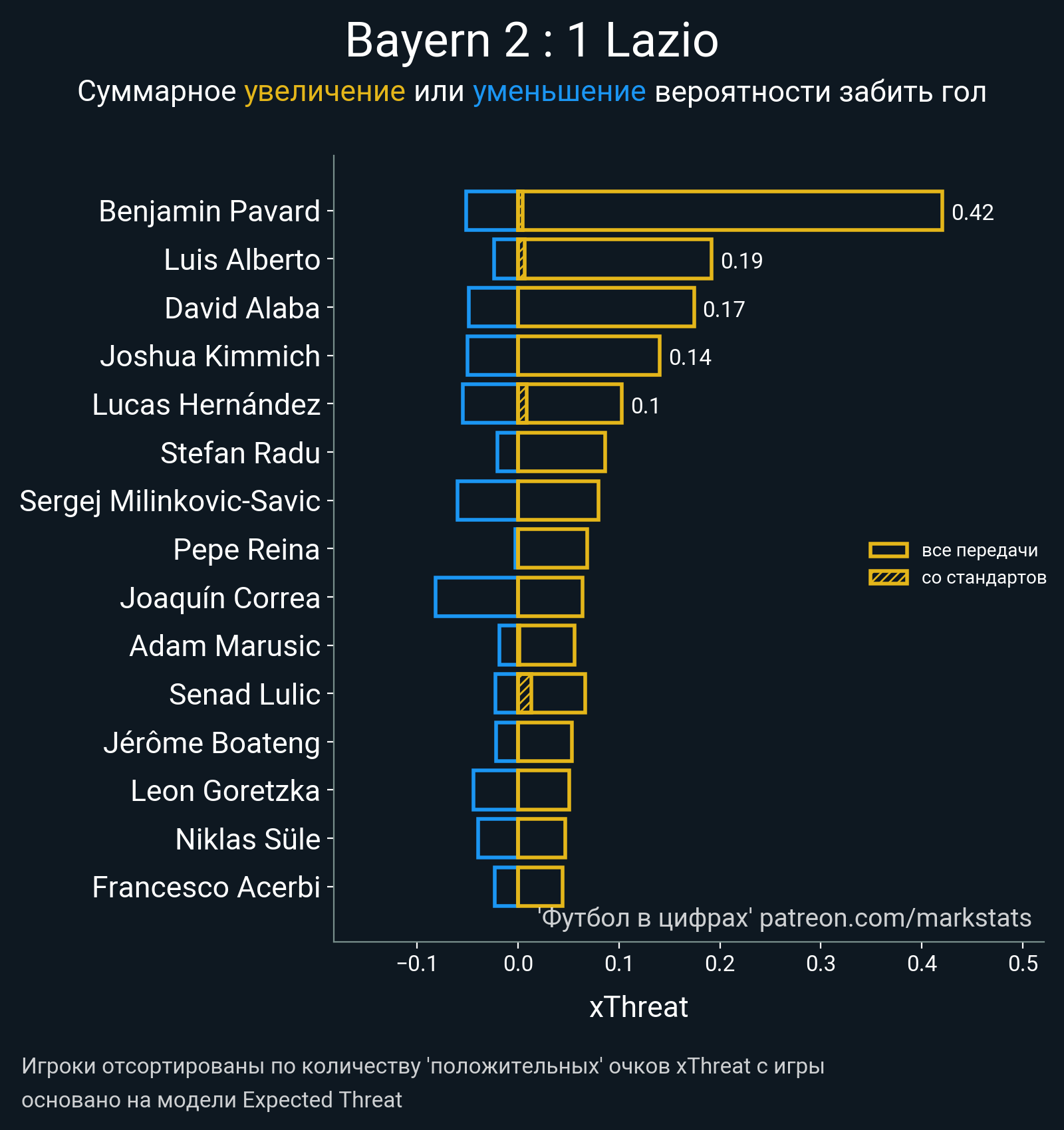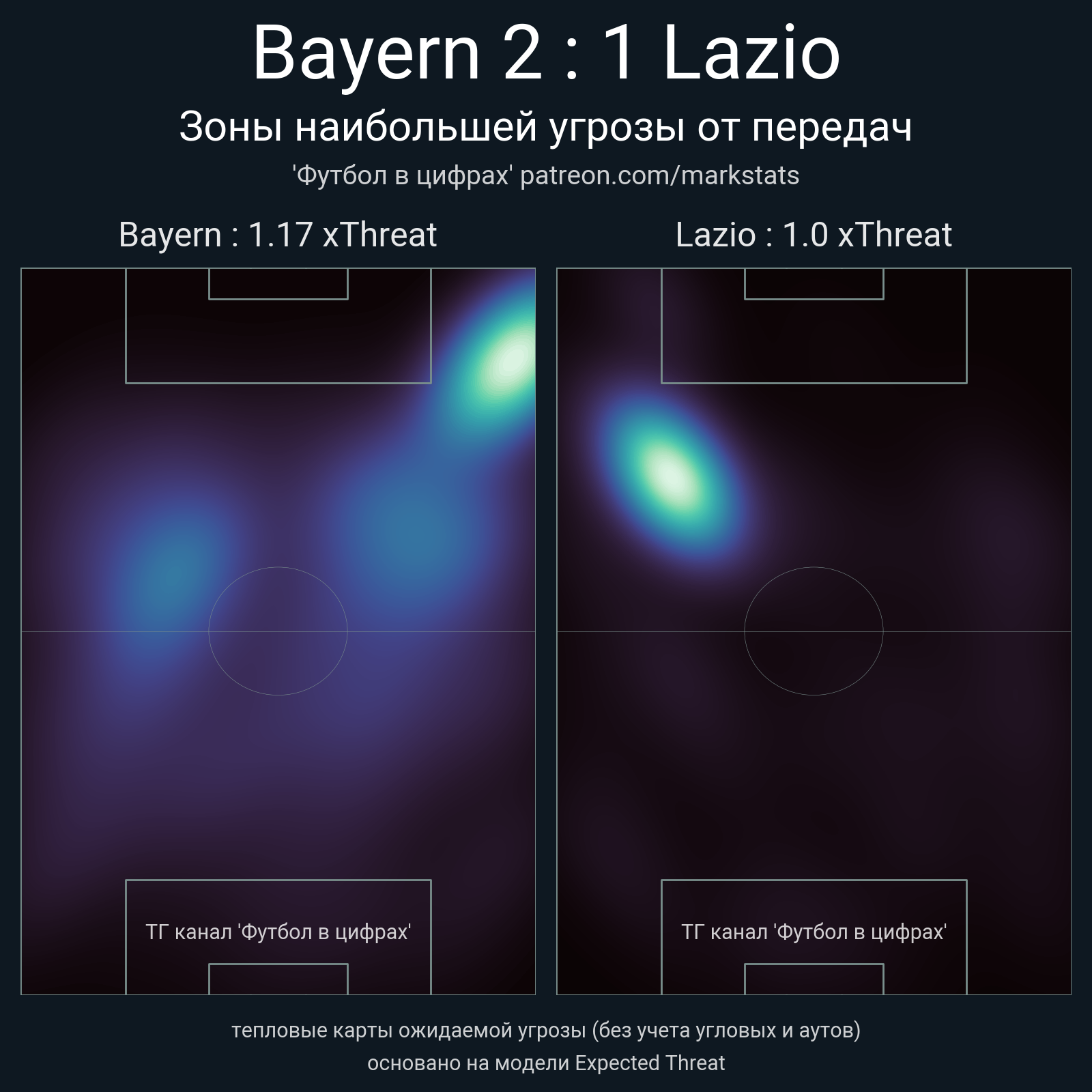 ▪ xThreat без учета угловых: 1.17 - 1.0