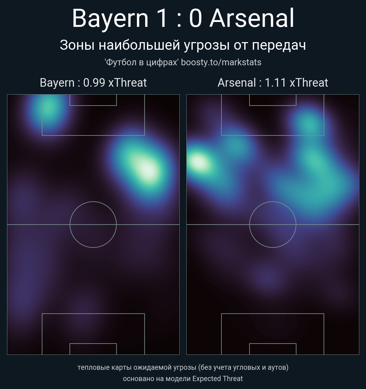 xThreat без учета угловых: 0.99 - 1.11