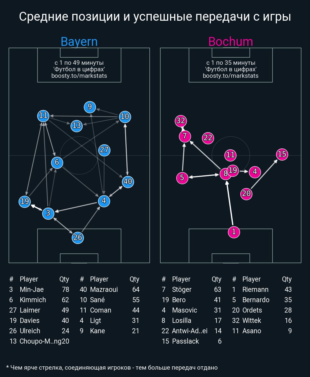 49 успешных передач из 57 попыток (3 под удар, 6 с продвижением, 28 на трети соперника)