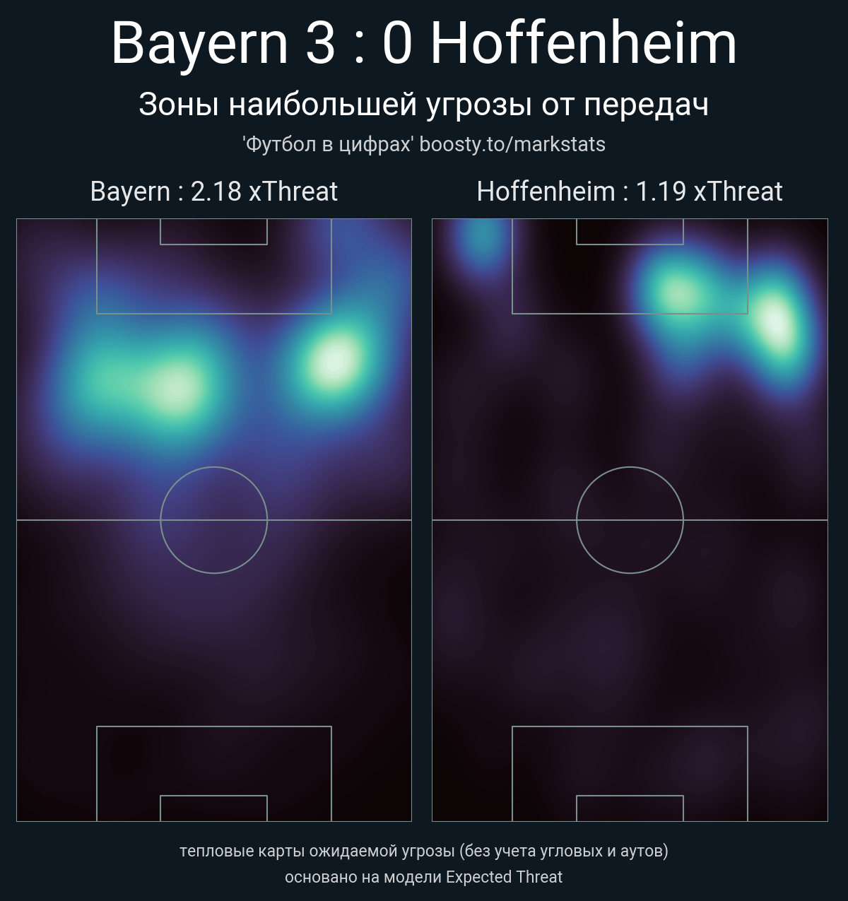 xThreat без учета угловых: 2.18 - 1.19