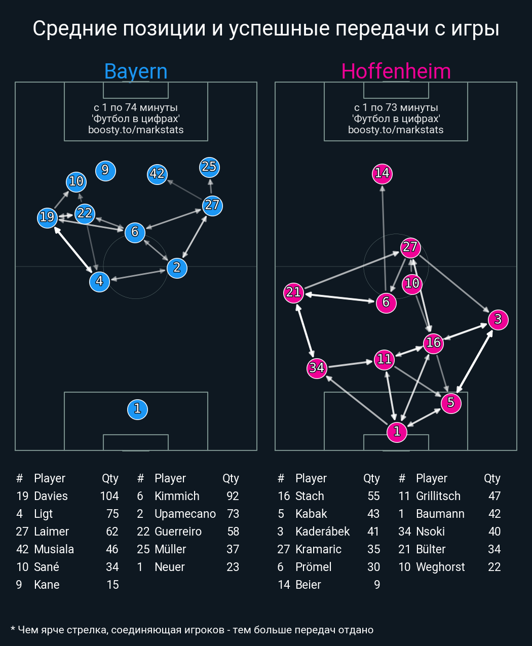 73 успешных передач из 76 попыток (2 под удар, 7 с продвижением, 7 на трети соперника)