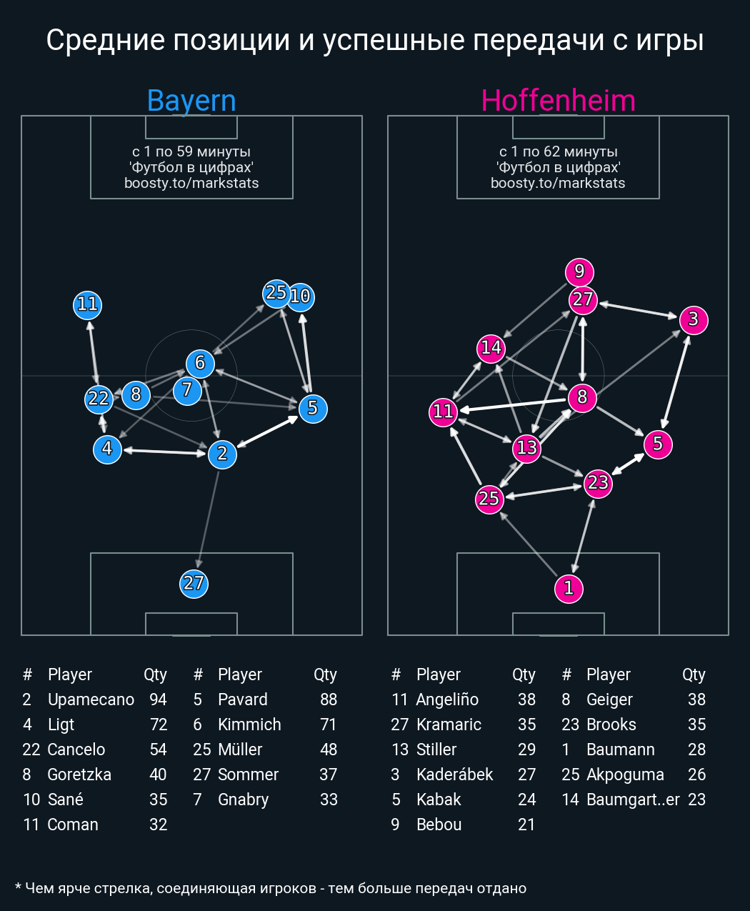 27 успешных передач из 51 попыток (1 под удар, 5 с продвижением, 9 на трети соперника)
