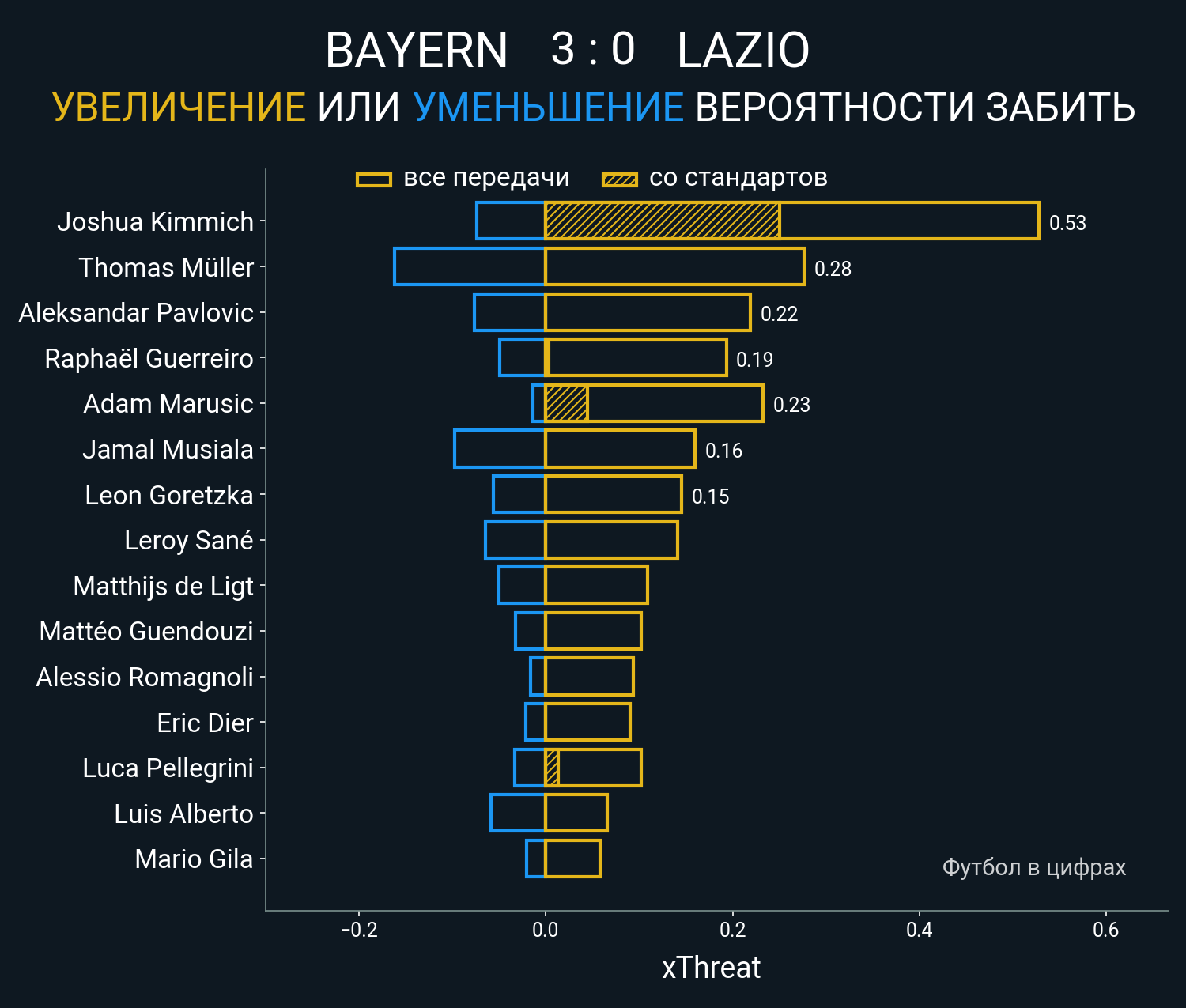 0.28 очка xT (+0.25 со стандартов)