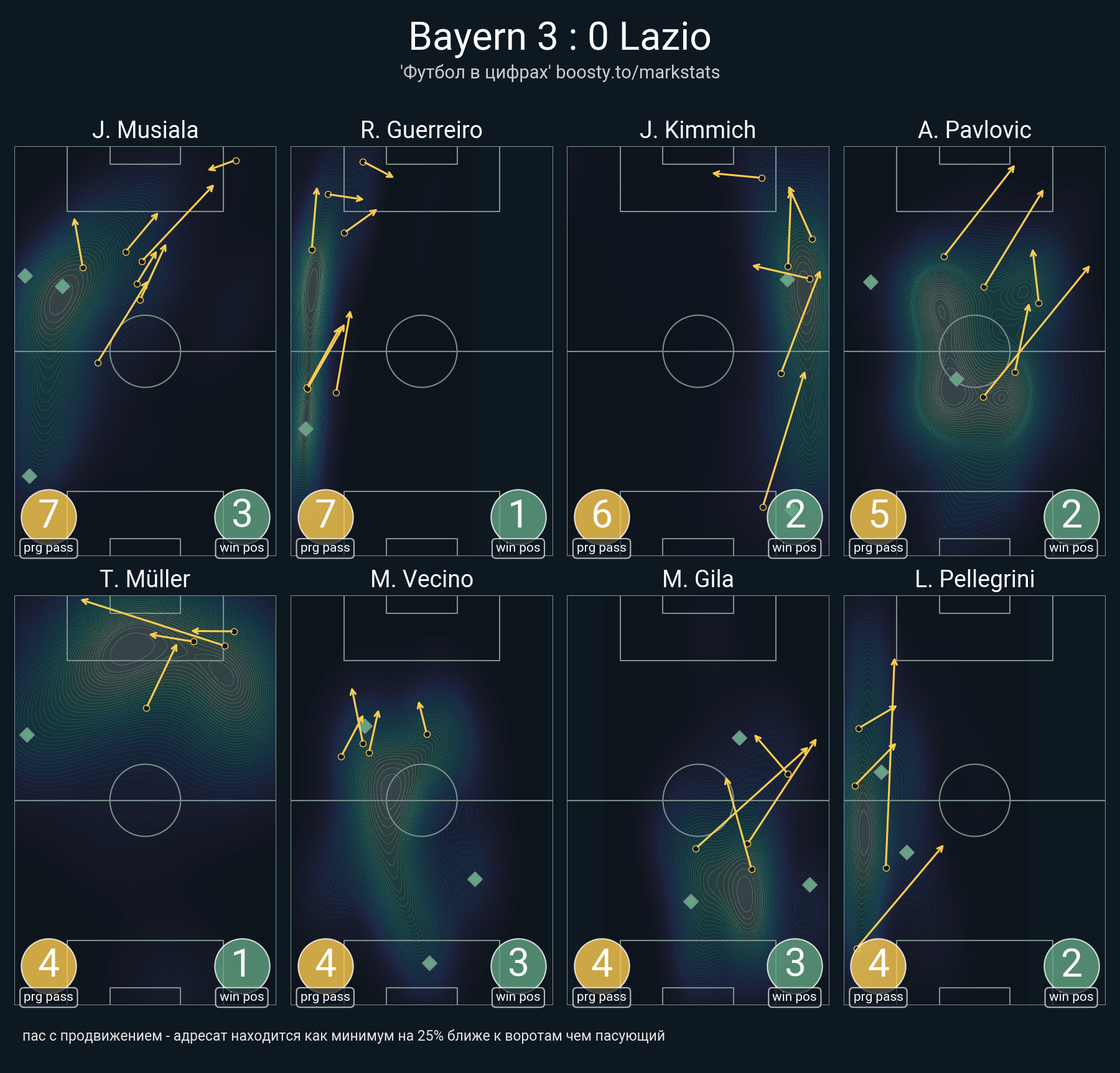 18 успешных передач из 25 попыток (4 под удар, 4 с продвижением, 14 на трети соперника)