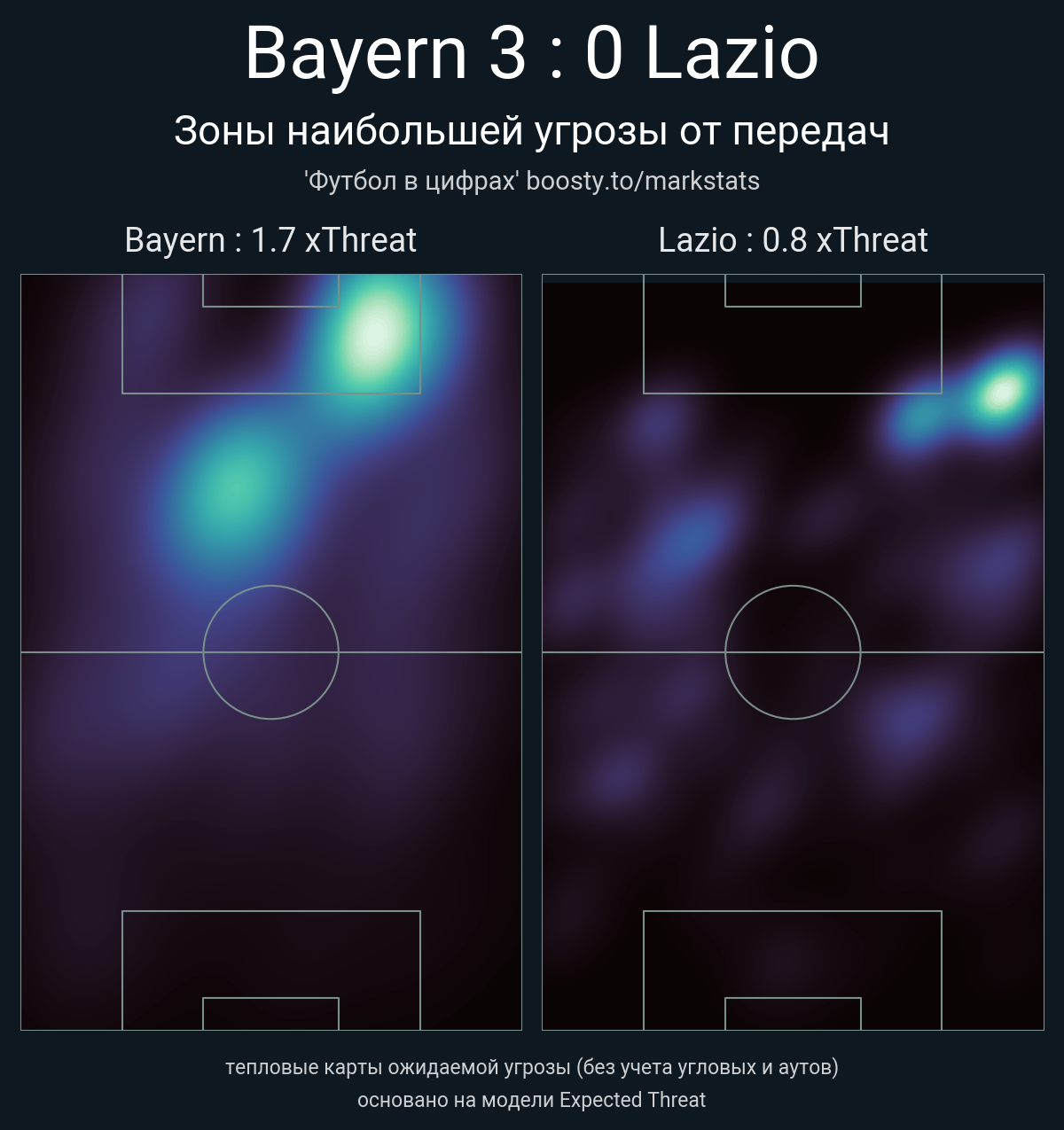 xThreat без учета угловых: 1.7 - 0.8