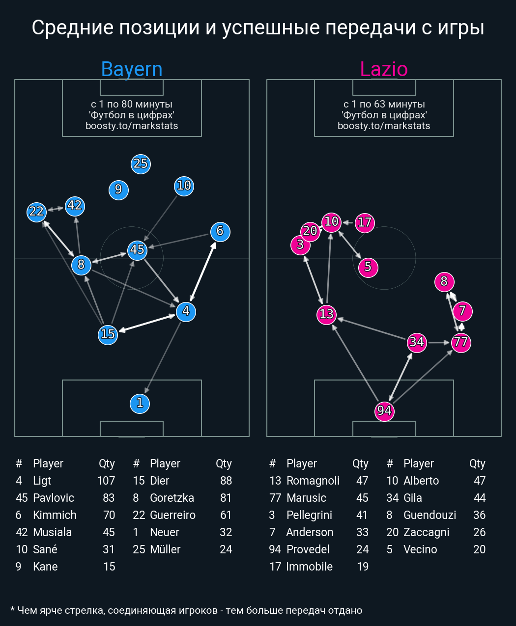 70 успешных передач из 83 попыток (4 под удар, 6 с продвижением, 20 на трети соперника)