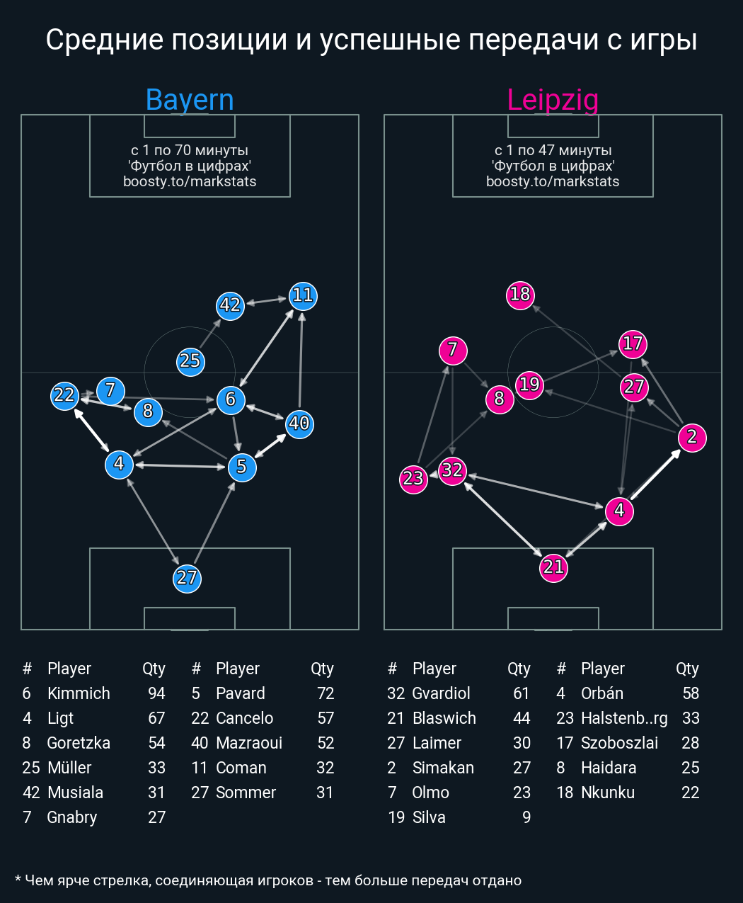 21 успешных передач из 31 попыток (2 под удар, 3 с продвижением, 4 на трети соперника)